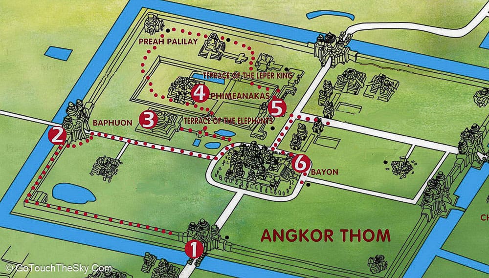 ตรงประตูเมืองด้านทิศตะวันออกที่มีชื่อเรียกว่า ประตูชัย (Victory Gate) เป็นจุดแวะถ่ายภาพที่ดีอีกจุดหนึ่งที่น้อยคนจะรู้จัก เราสามารถเดินขึ้นไปบนเนินดินด้านข้างของซุ้มประตู ซึ่งมีต้นไม้ใหญ่ขึ้นอยู่ เราจะได้สัมผัสกับความเก่าแก่ของศิลปะโบราณและความยิ่งใหญ่ของธรรมชาติอย่างใกล้ชิด ทำให้เกิดความรู้สึกว่า ตัวเรานั้นช่างเล็กนิดเดียวเท่านั้น…