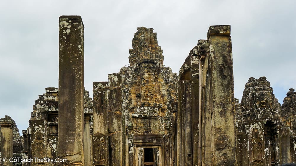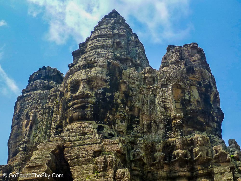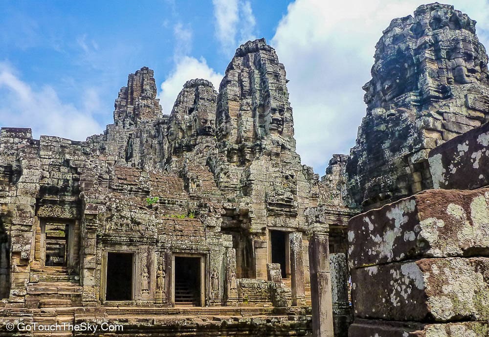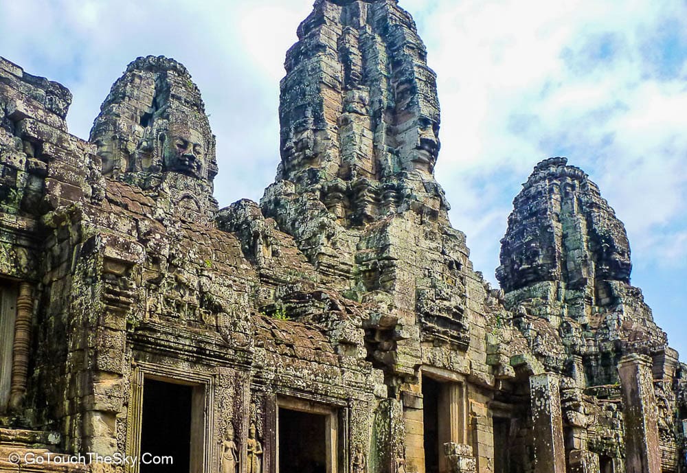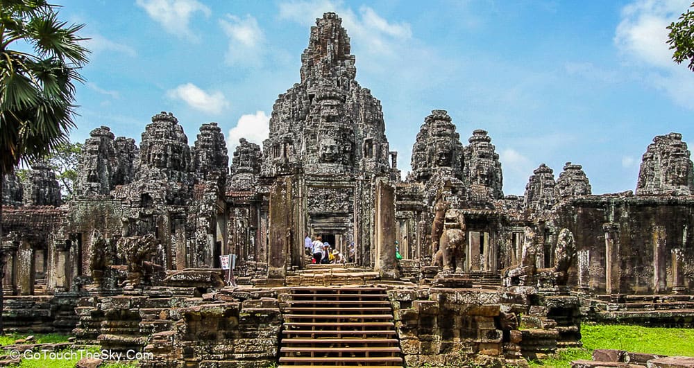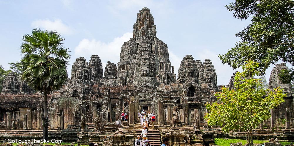ปราสาทบายน เป็นปราสาทหลวงประจำรัชสมัยของพระเจ้าชัยวรมันที่ 7 ถูกสร้างขึ้นโดยการนำเอาหินมาวางซ้อนๆกันขึ้นเป็นรูปร่าง แม้จะเป็นปราสาทที่ไม่ใหญ่โตเท่ากับนครวัด แต่มีความแปลกและดูลี้ลับ มีพระพักตร์ของพระอวโลกิเตศวรที่ทอดมองลงมาจากยอดปราสาททั้ง 54 ยอด รวมแล้วถึง 216 หน้า หากขึ้นไปอยู่ภายในปราสาทนี้ ไม่ว่ามุมไหนก็หาได้รอดหลุดพ้นจากสายตาเหล่านี้ไปได้เลย..