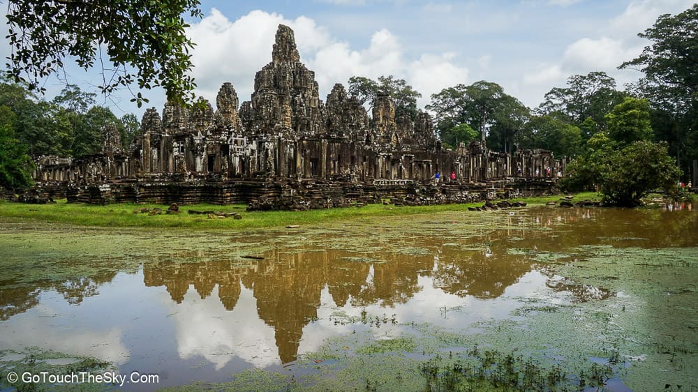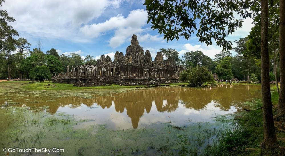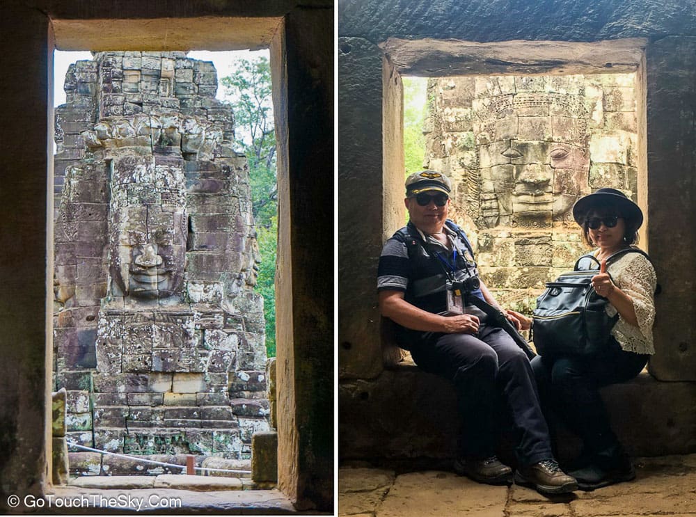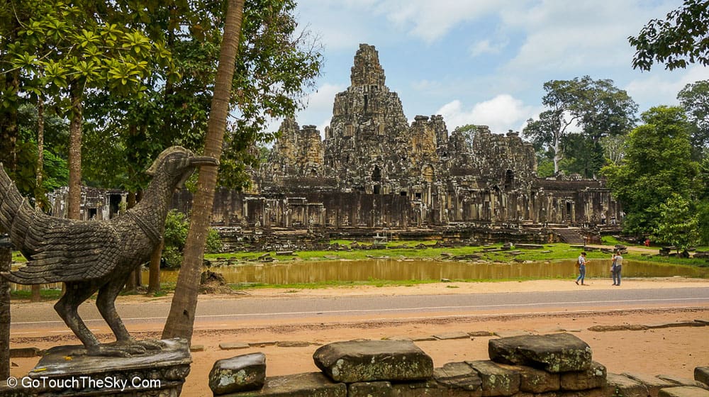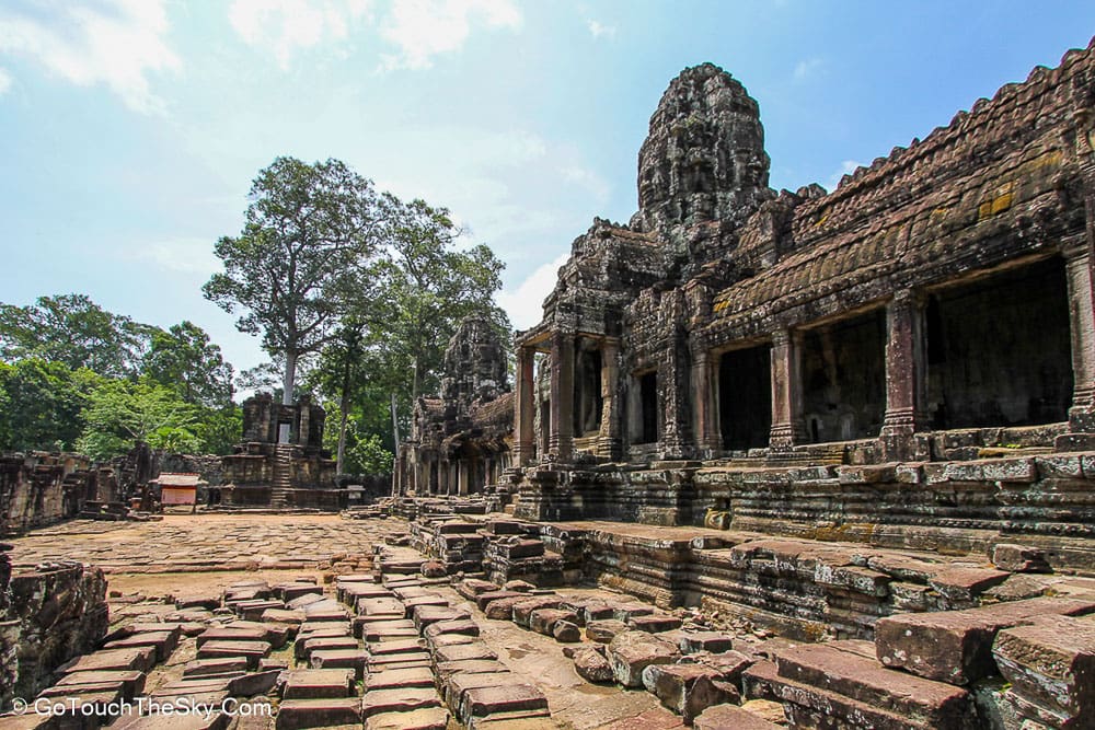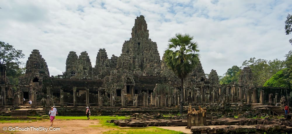 ปราสาทบายน เป็นปราสาทหลวงประจำรัชสมัยของพระเจ้าชัยวรมันที่ 7 ถูกสร้างขึ้นโดยการนำเอาหินมาวางซ้อนๆกันขึ้นเป็นรูปร่าง แม้จะเป็นปราสาทที่ไม่ใหญ่โตเท่ากับนครวัด แต่มีความแปลกและดูลี้ลับ มีพระพักตร์ของพระอวโลกิเตศวรที่ทอดมองลงมาจากยอดปราสาททั้ง 54 ยอด รวมแล้วถึง 216 หน้า หากขึ้นไปอยู่ภายในปราสาทนี้ ไม่ว่ามุมไหนก็หาได้รอดหลุดพ้นจากสายตาเหล่านี้ไปได้เลย..