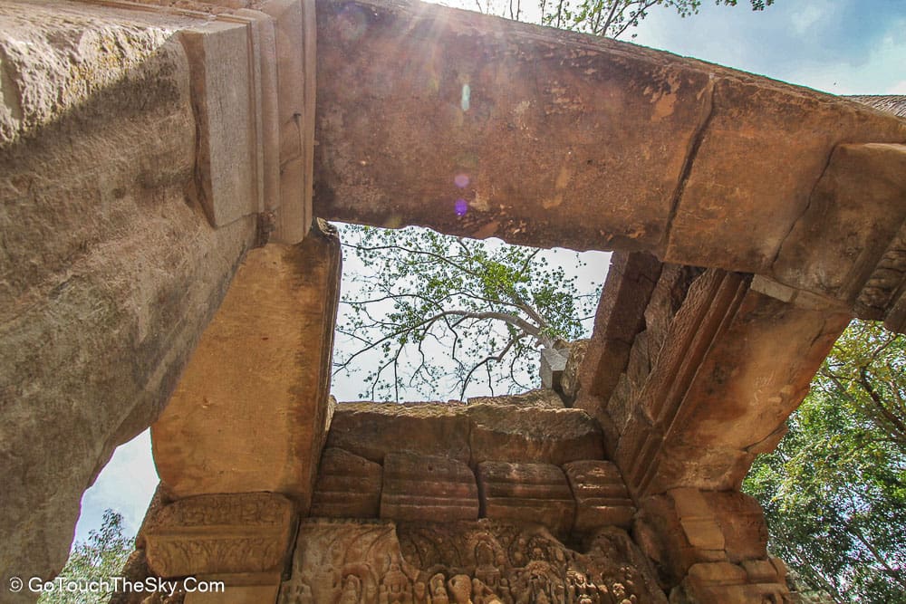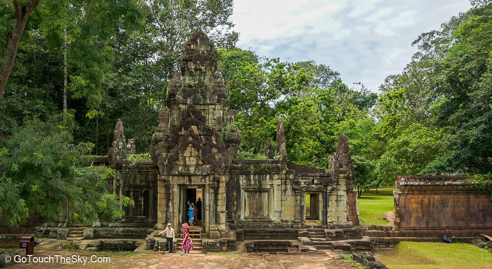 การเที่ยวชมปราสาทตาพรหม เราสามารถเข้าจากทางด้านหน้าและเดินทะลุมาออกทางด้านหลังได้