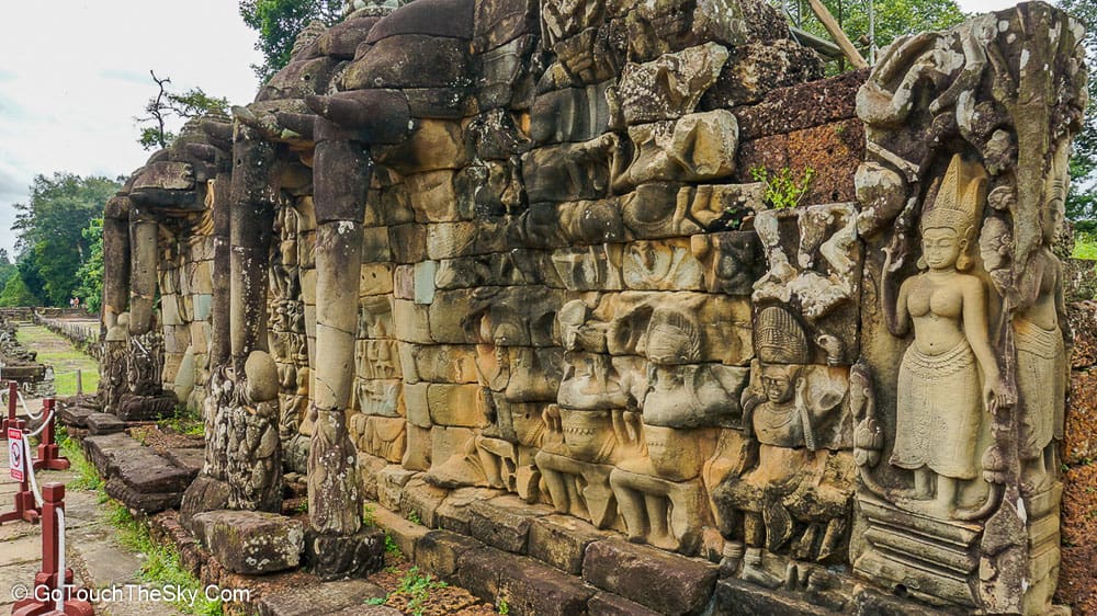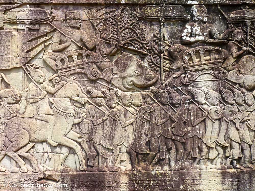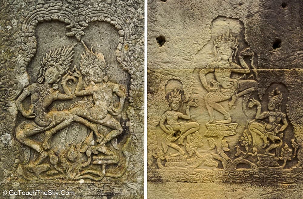 ตามระเบียงคตชั้นนอกมีภาพสลักนูนต่ำของเหล่านางอัปสรกำลังร่ายรำ ผนังด้านทิศตะวันออกมีภาพขบวนทหารและแม่ทัพนายกองของขบวนทัพพระเจ้าชัยวรมันที่ 7