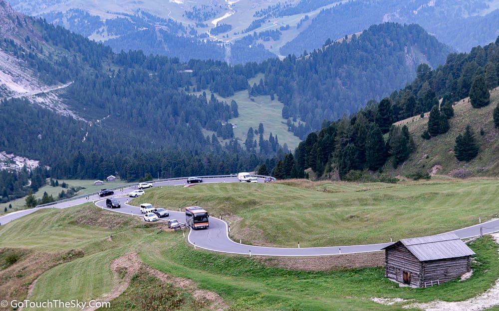 หลังจากท่องเที่ยวโดโลไมท์ด้านตะวันตกไปสองวันแล้ว วันนี้เราจะย้ายจากเมือง Ortisei ไปปักหลักต่อที่เมือง Cortina D’Ampezzo ซึ่งเป็นเมืองศูนย์กลางด้านตะวันออกของโดโลไมท์ เส้นทางจาก Ortisei มุ่งสู่เมือง Cortina มีระยะทางประมาณ 74 กิโลเมตร เป็นถนนราดยางแบบสองเลนขนาดไม่ใหญ่นักเเต่มีสภาพดี เส้นทางนี้จะตัดผ่านชายขอบของอุทยานแห่งชาติ Parco Naturale หรือ Puez Odle Naturpark จึงต้องขึ้นๆลงๆไปตามภูมิประเทศที่เป็นภูเขาอยู่ตลอดเวลา การขับรถจึงทำความเร็วไม่ได้มากนัก แต่ก็ถือว่าเป็นเส้นทางท่องเที่ยวที่น่าสนใจเพราะตลอดทางจะมีวิวสวยๆให้จอดถ่ายรูปอยู่เป็นระยะๆ ควรเผื่อเวลาเดินทางไว้สัก 2-3 ชั่วโมง เราบอกตัวเองว่า ความสุขคือการเดินทาง มิใช่จุดหมายปลายทาง… ^^