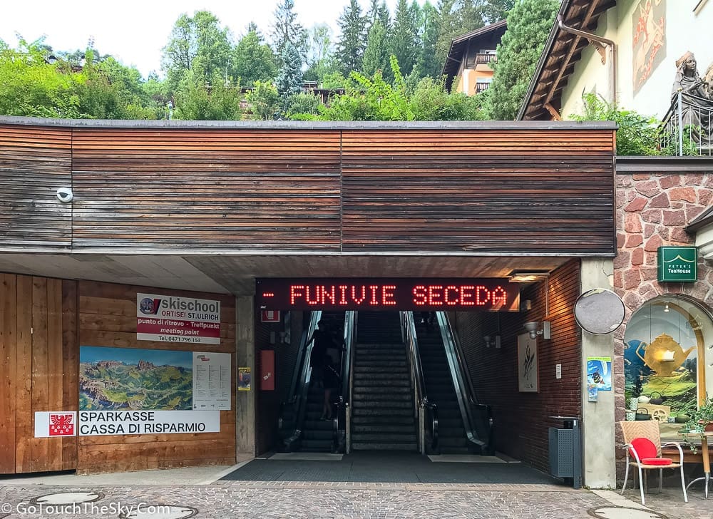 ด้านซ้ายมือของจตุรัสเป็นจุดเริ่มต้นของ อุโมงค์ทางเชื่อม (“La Curta”) ที่ทอดขึ้นเนินไปยัง สถานีกระเช้า Seceda ที่ตั้งอยู่สูงขึ้นไปประมาณ 60 เมตร ประกอบไปด้วยบันไดเลื่อน 6 ตัวและอุโมงค์ทางเดินเลื่อน 4 แห่ง มีความยาวทั้งสิ้นประมาณ 295 เมตร สำหรับนักท่องเที่ยว การเดินทางไป-มาระหว่างสถานีกระเช้า Seceda และ Alpe di Siusi จึงมีความสะดวกสบายมาก