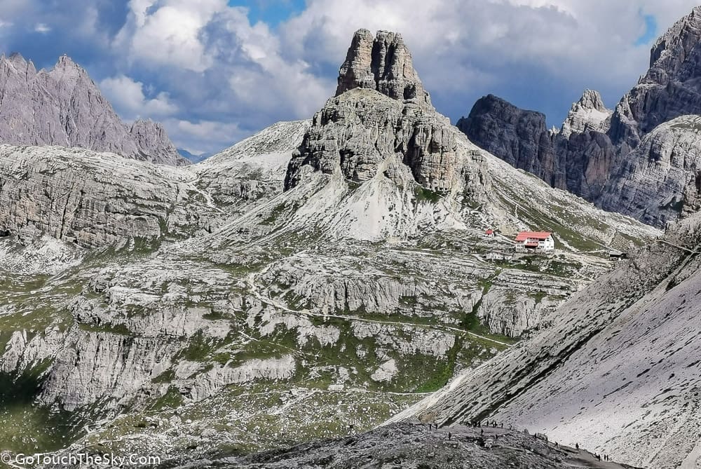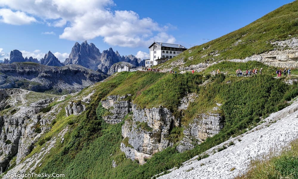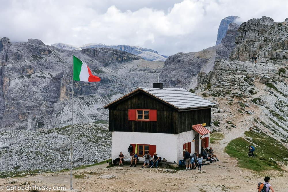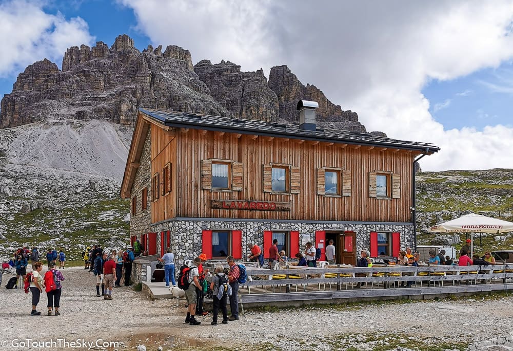 เดินต่อไปอีกนิดจะถึง Rifugio Lavaredo ซึ่งเป็นที่พักเก่าเเก่อีกเเห่ง ตั้งอยู่โดดเดี่ยวริมทางผ่าน สร้างเมื่อปี ค.ศ.1954 โดย Francesco Corte Colò (“Mazzetta”) ซึ่งเป็นพรานภูเขาเเละเจ้าหน้าที่กู้ภัย-ช่วยชีวิตรุ่นเเรกๆของที่นี่
