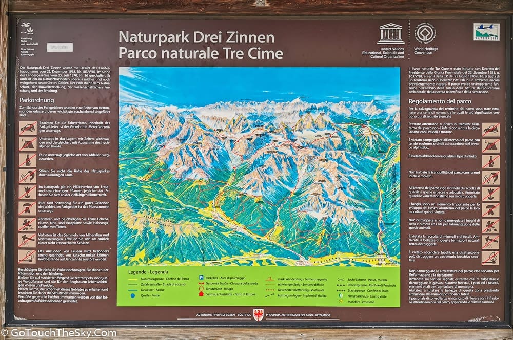 Tre Cime (อ่านออกเสียงตามภาษาอิตาลีว่า เตร ซิเม่) ตั้งอยู่ในเขตอุทยานเเห่งชาติ Tre Cime Naturel Park ใช้เวลาเดินทางโดยการขับรถจากเมือง Cortina D’Ampezzo ประมาณ 40 นาที (ระยะทางประมาณ 22 กิโลเมตร) ต้องเสียเงินค่าเข้าอุทยานสำหรับรถยนต์ด้วย คันละ 30 ยูโร