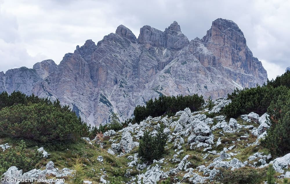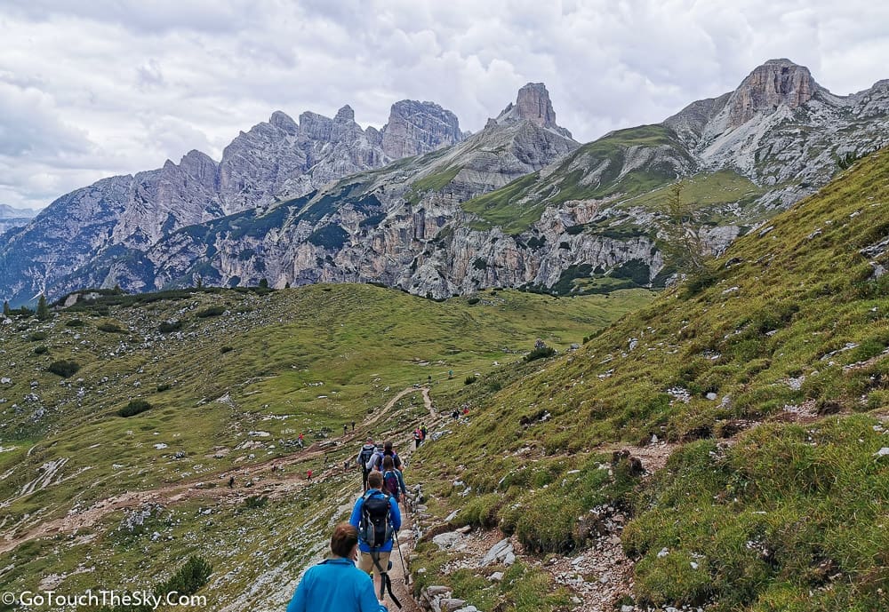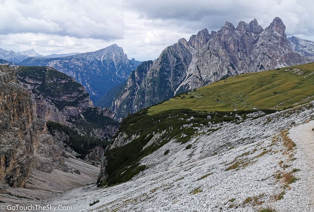เมื่อเดินไปเรื่อยๆ มุมมองของภาพยอดเขา Tre Cime ที่เห็นก็จะเปลี่ยนไปตลอดเวลา