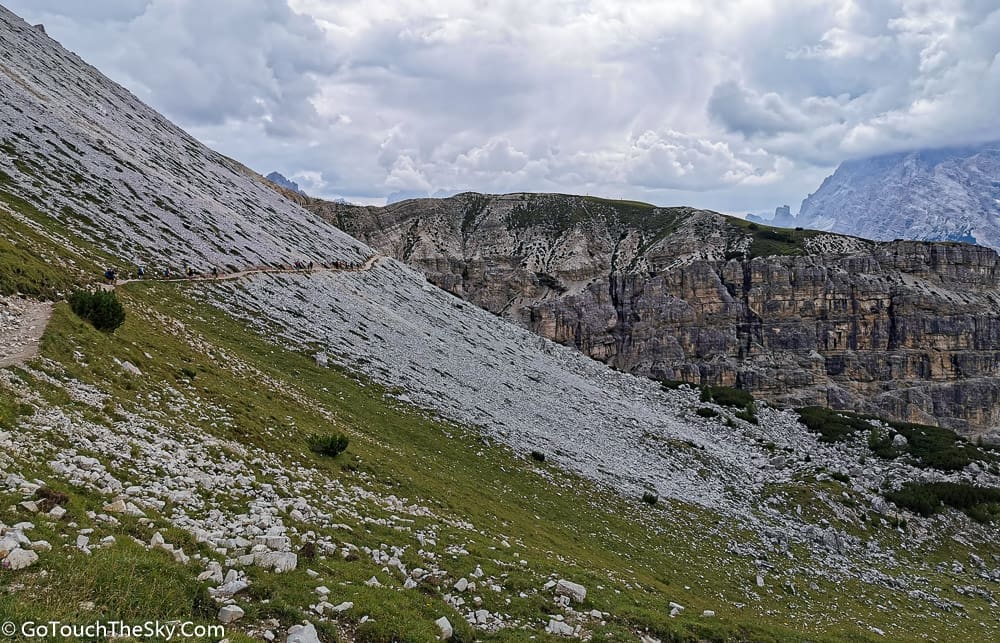 ในช่วงแรกต้องเดินขึ้นเนินเป็นทางยาว ก่อนค่อยๆอ้อม Cima Ovest ไปทางด้านทิศใต้