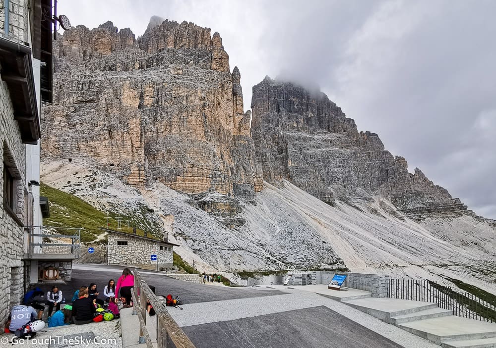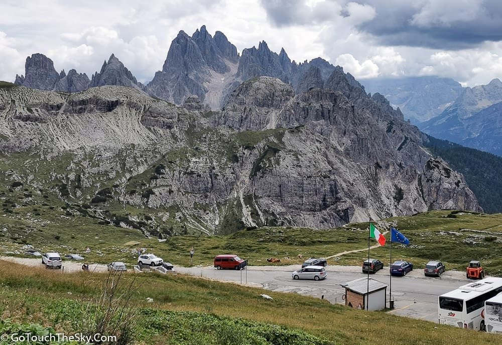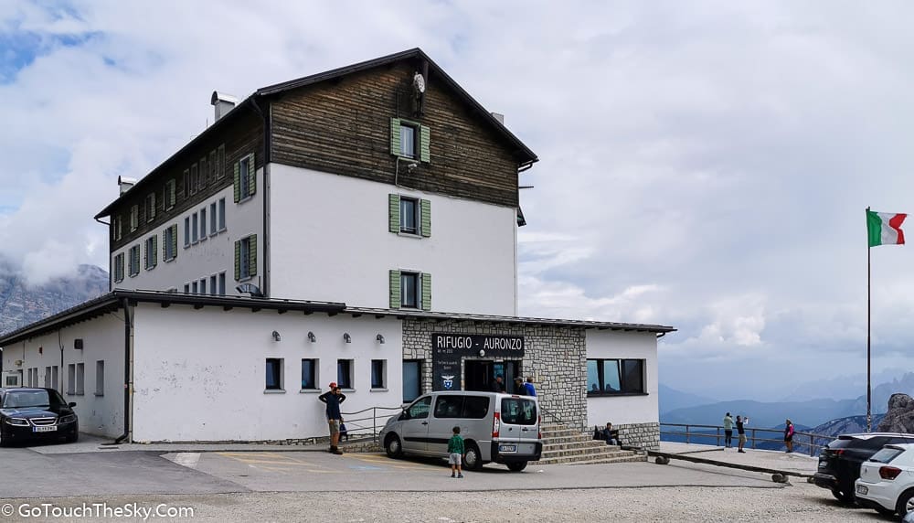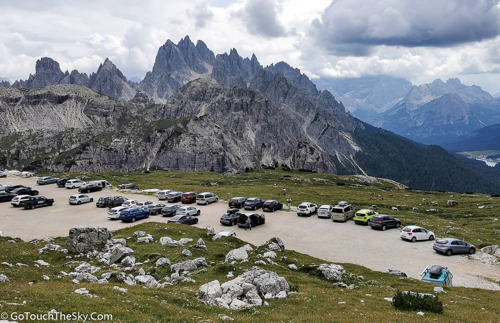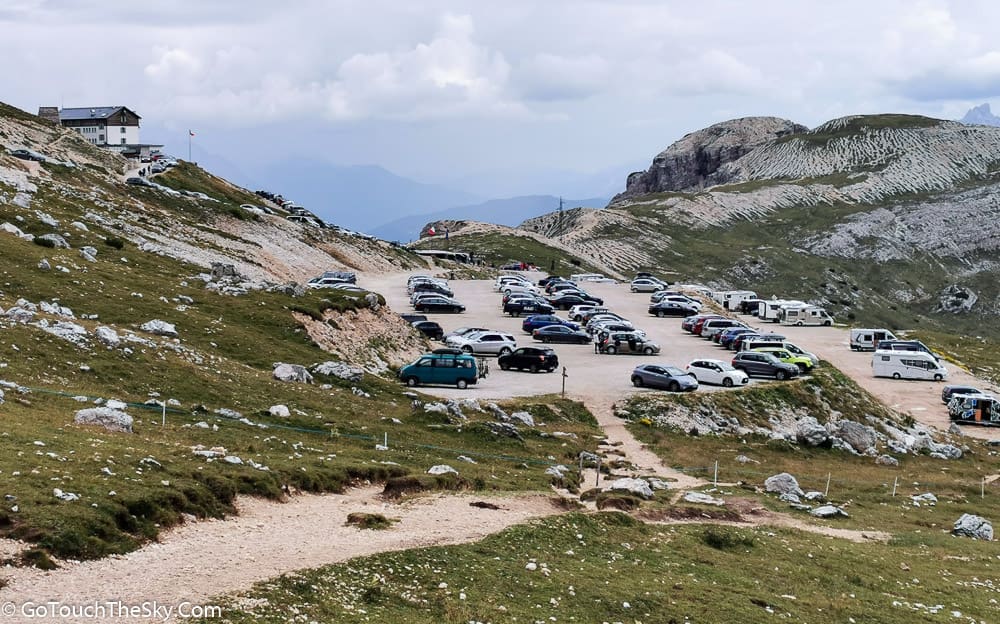 มีที่จอดรถกว้างขวาง (ไม่เสียค่าจอด) เเต่ต้องเดินขึ้นเนินอีกเล็กน้อยเพื่อไปยังอาคารของ Rifugio Auronzo