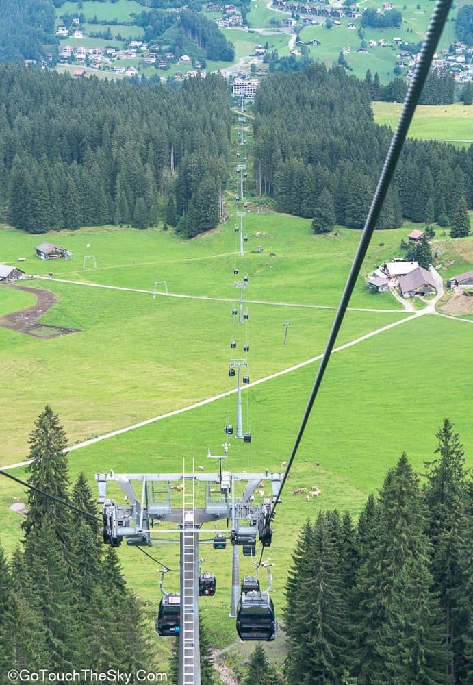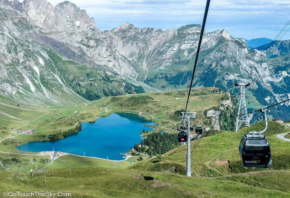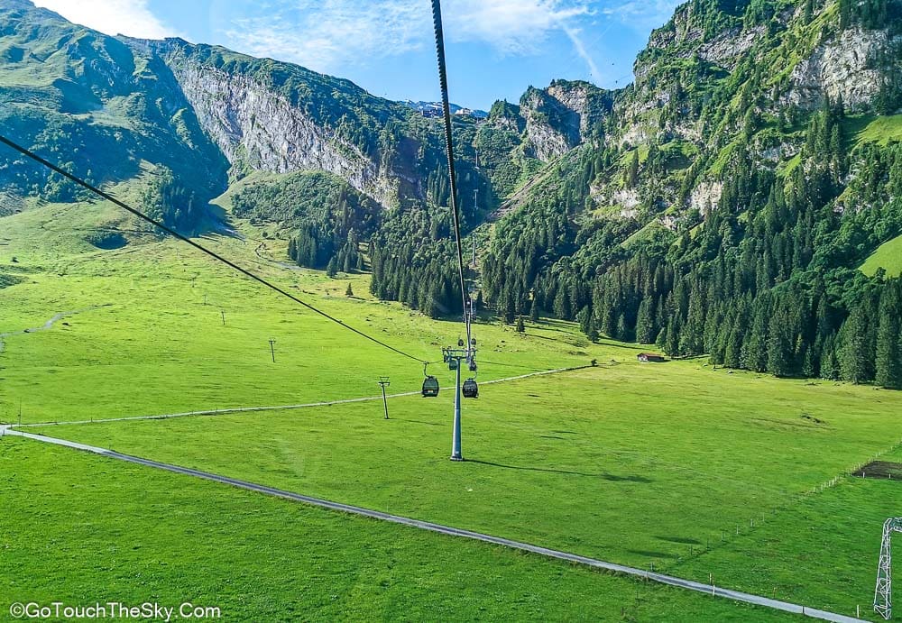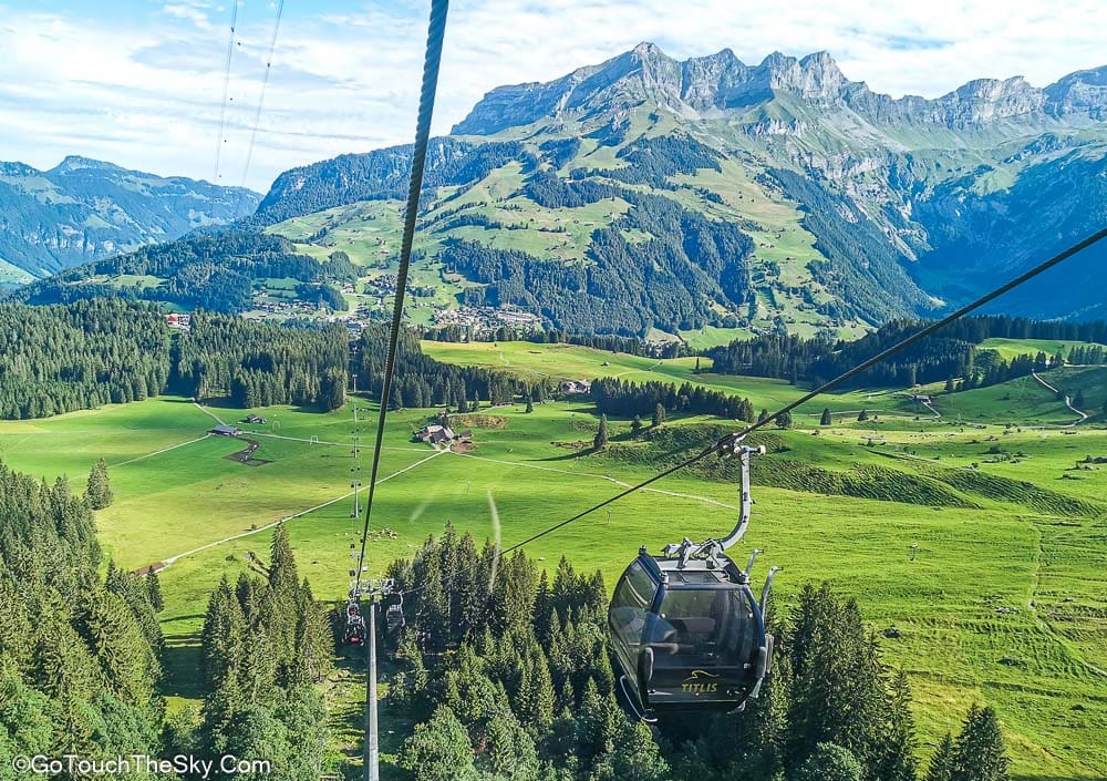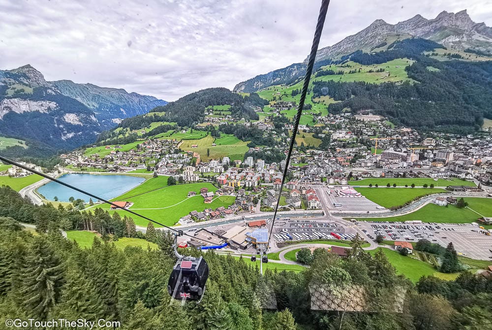 ช่วงเเรกบน TITLIS Xpress cable car จะได้เห็นทิวทัศน์สีเขียวของทุ่งหญ้า ภูเขา และบ้านเรือนสวยงามที่อยู่เบื้องล่างของ Engelberg
