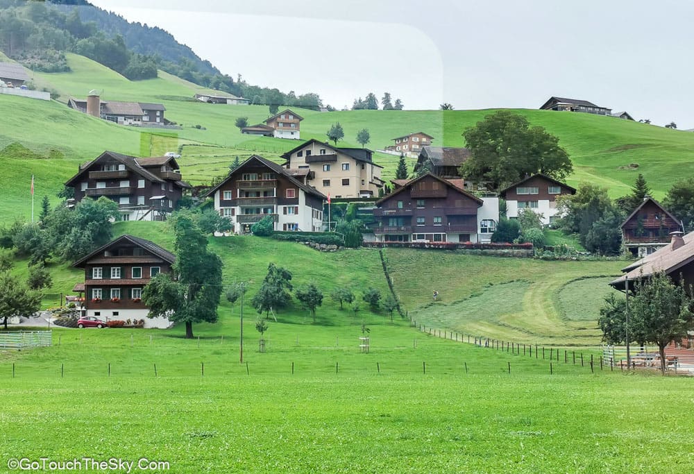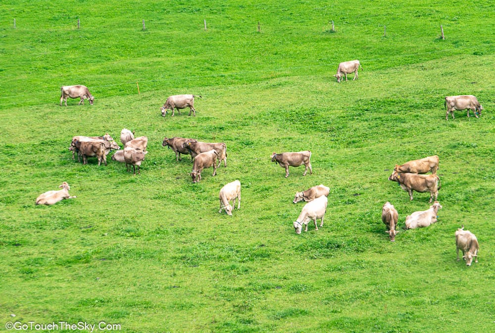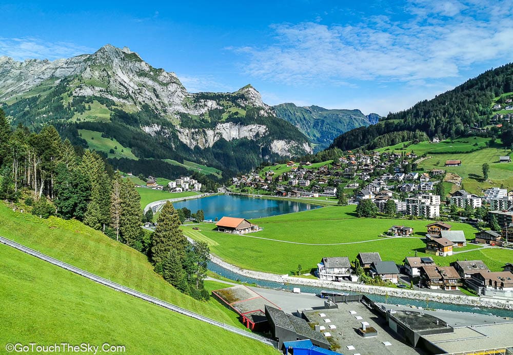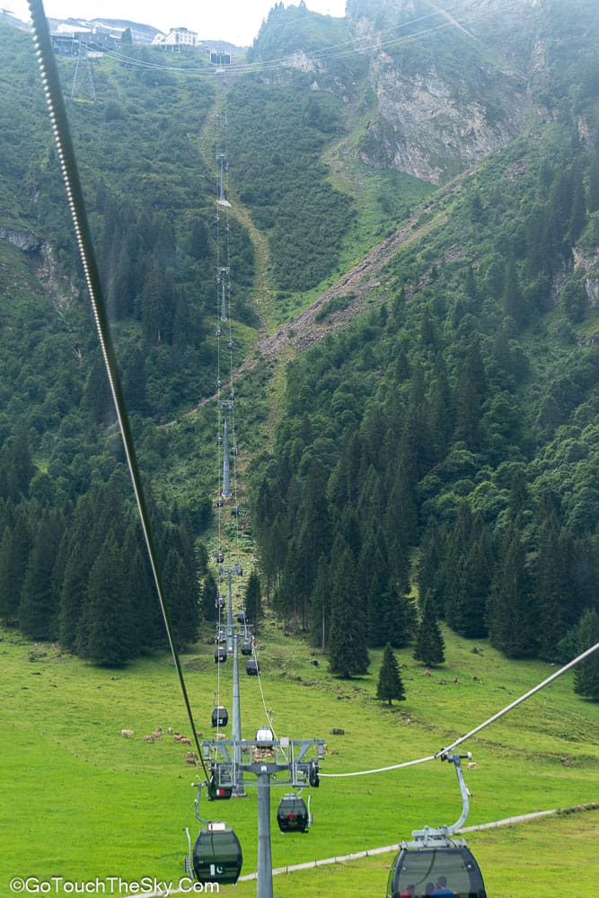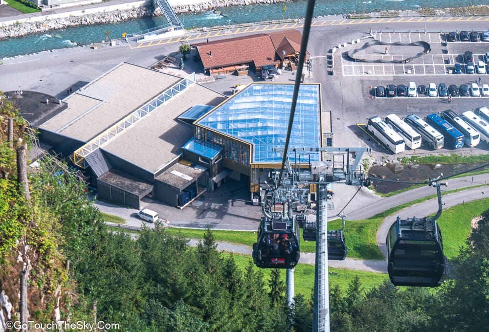 ช่วงเเรกบน TITLIS Xpress cable car จะได้เห็นทิวทัศน์สีเขียวของทุ่งหญ้า ภูเขา และบ้านเรือนสวยงามที่อยู่เบื้องล่างของ Engelberg