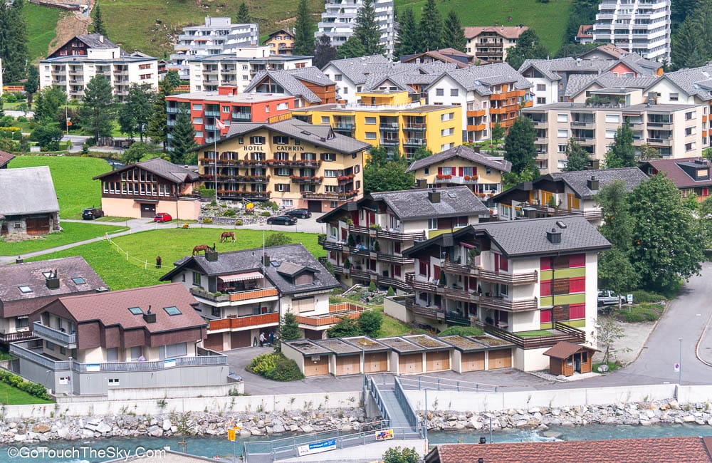 จากสถานีรถไฟ Engelberg ถ้ามีเวลาสามารถเดินชมวิวไปเรื่อยๆประมาณ 10 นาที (ระยะทางประมาณ 700 เมตร) หรือใช้บริการรถฟรีชัตเติ้ลบัส เพื่อไปยังสถานีกระเช้าไฟฟ้าได้