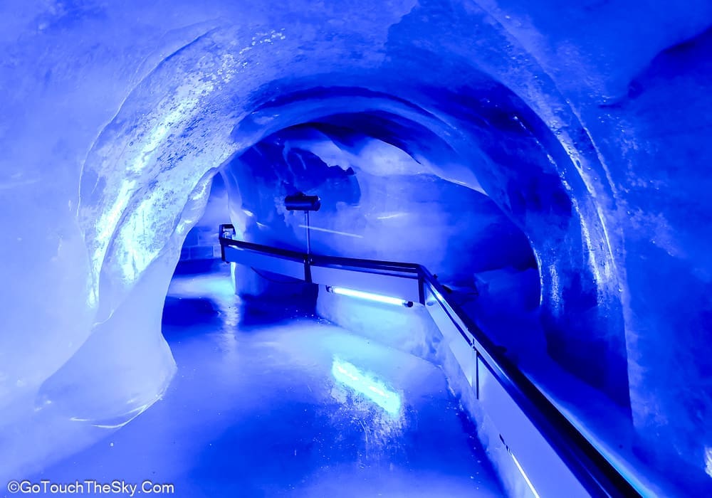Glacier Cave เป็นถ้ำธารน้ำแข็งบนภูเขาทิตลิส ทางเข้าอยู่ที่ชั้น 1 ซึ่งเป็นจุดขึ้น-ลงกระเช้าไฟฟ้า จึงสามารถแวะชมได้เลยเมื่อมาถึง
