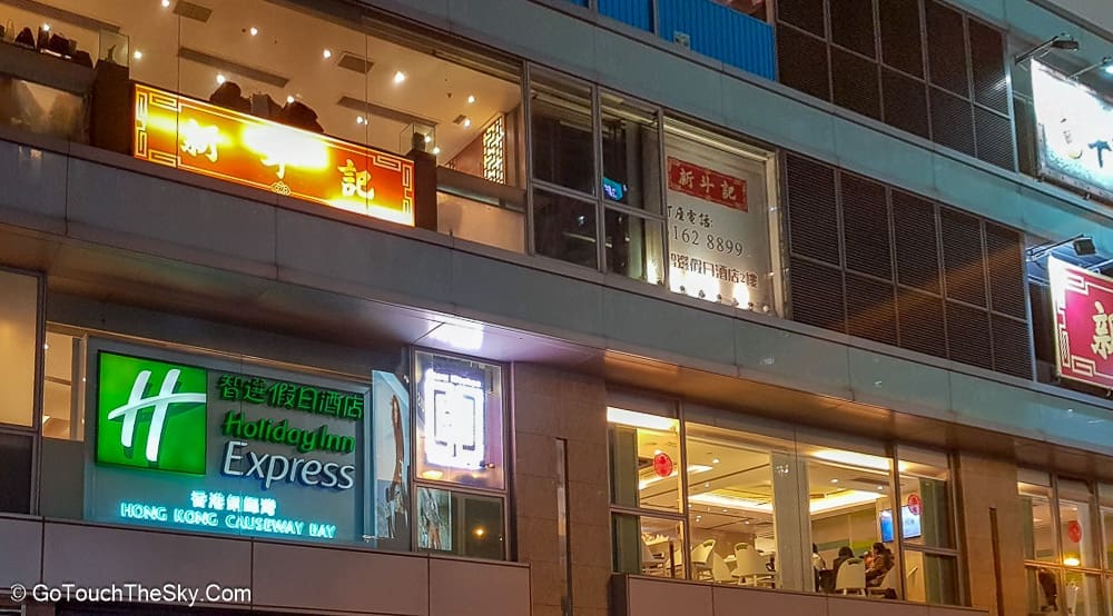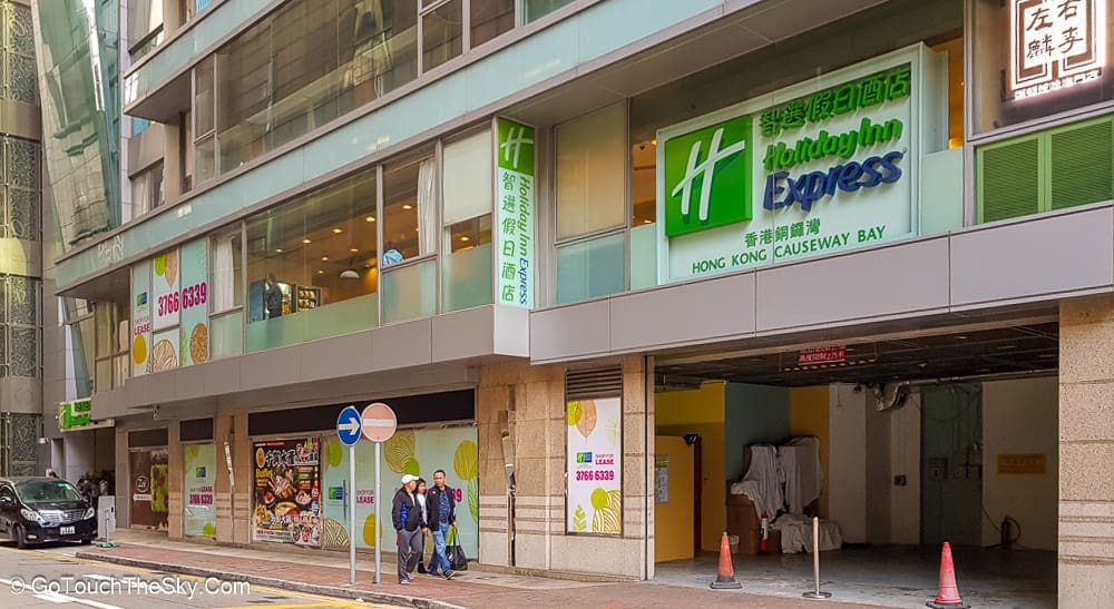 เราเลือก โรงแรมฮอลิเดย์อินน์เอ๊กซ์เพรสคอสเวย์เบย์ (Holiday Inn Express Causeway Bay) เป็นที่พักในทริปล่าสุด หลังจากเคยพักที่ย่านจิมซาจุ่ยและถนนนาธานไปหลายครั้งแล้ว ข้อดีของการพักในย่านนี้คืออยู่ใกล้กับแหล่งช็อบปิ้ง ร้านอาหาร สถานที่ท่องเที่ยวเช่น วิคตอเรียพีค ศูนย์การประชุมและนิทรรศการ (Hong Kong Convention and Exhibition Center), รูปปั้นดอกชงโคทองคำ (Golden Bauhinia Square), ท่ารถเมล์ที่ Exchange Square (ต้นทางในการเดินทางไปอ่าวรีพัลส์เบย์), Hong Kong MRT Station (ต้นทางของรถไฟฟ้า Airport Express), ตึกสูงที่เป็นแลนด์มาร์คสำคัญของฮ่องกง เช่น IFC Tower, Bank of China Tower, HSBC Tower ฯลฯ