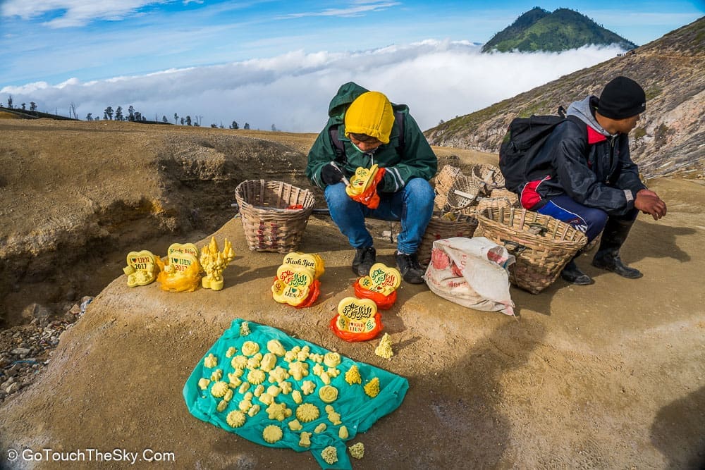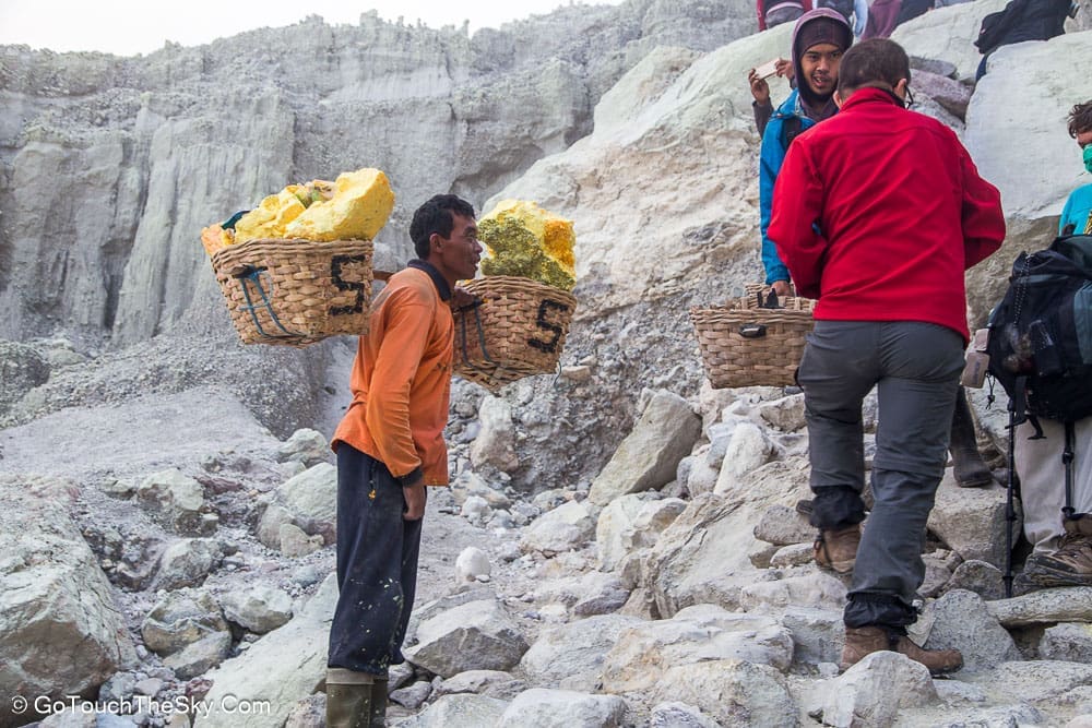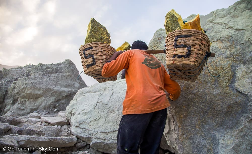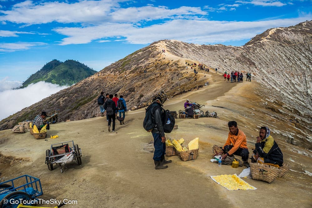 ปริมาณกำมะถันที่มีอยู่เป็นจำนวนมากทำให้เกิดอาชีพขุดเอากำมะถันและลำเลียงออกไปขายโดยชาวบ้านในแถบนั้น จากการสอบถามได้ข้อมูลมาว่าในหนึ่งหาบของกำมะถันที่ชาวบ้านแบกลำเลียงออกมานั้น มีน้ำหนักประมาณ 70 กิโลกรัม โดยจะขายได้ในราคากิโลกรัมละ 1,000 รูเปียส์ (ประมาณ 2.60 บาท)