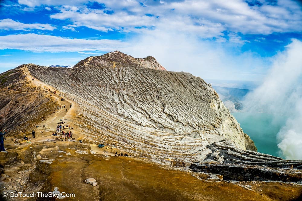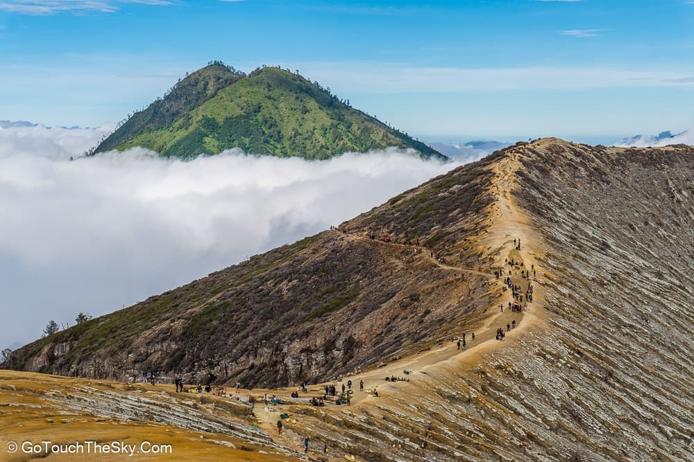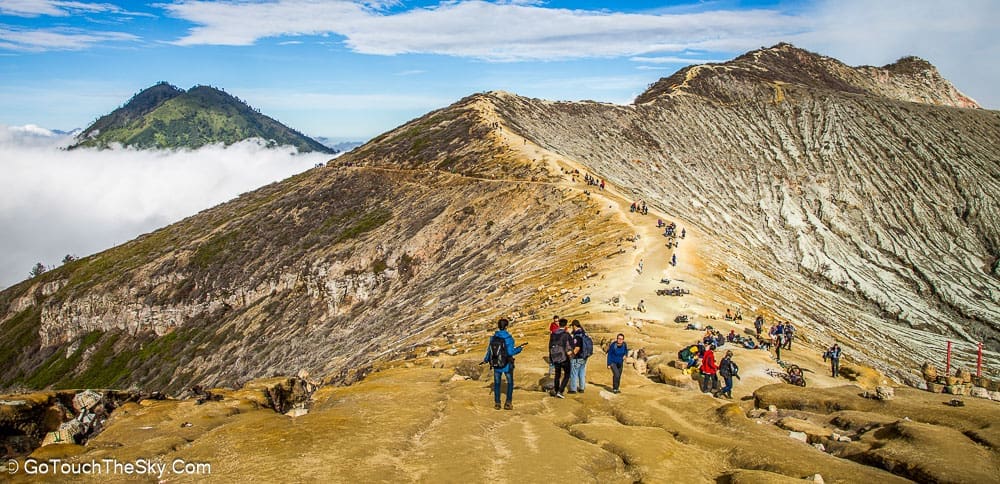 จากจุดที่เดินลงไปยังเหมืองกำมะถัน เราสามารถเดินลัดเลาะไปตามขอบปล่องภูเขาไฟอีกหน่อย เพื่อไปยังจุดชมวิวอันสวยงามได้