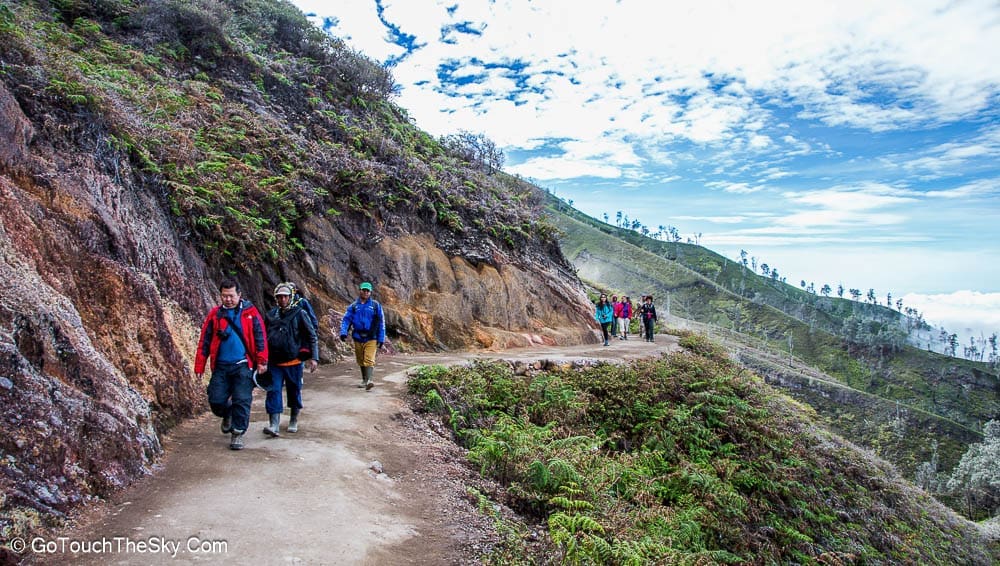 การลงไปยังเหมืองกำมะถัน จะต้องเดินลงจากปากปล่องอีกเป็นระยะทางประมาณ 700 เมตร (ทางเเยกด้านขวามือ)