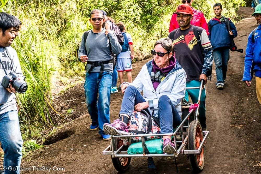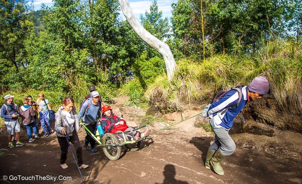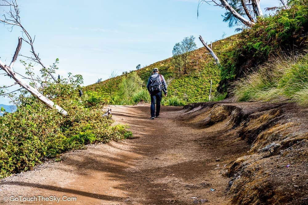 เราเริ่มออกเดินในเวลาประมาณตีสาม อุปกรณ์สำคัญที่จำเป็น(ในขณะนี้) คือไฟฉายติดตัว ระยะทางถึงยอดปากปล่องภูเขาไฟประมาณ 3-4 กิโลเมตร เเต่ต้องใช้เวลาในการเดินทางเกือบสองชั่วโมง เนื่องจากทางในบางช่วงชันเกือบ 45 องศา ประกอบกับความมืดจึงทำให้ต้องระมัดระวังมากเป็นพิเศษ