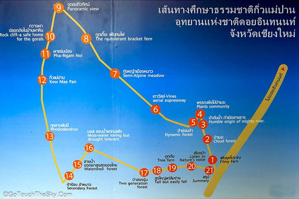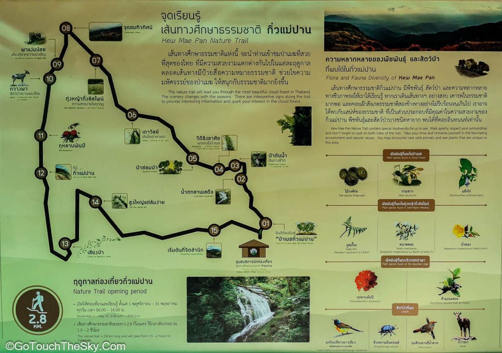 เส้นทางศึกษาธรรมชาติกิ่วแม่ปาน” (Kew Mae Pan Nature Trail) คือเส้นทางเดินศึกษาธรรมชาติระยะสั้น มีเส้นทางเดินเป็นวงรอบระยะทางประมาณ 2.8 กิโลเมตร ใช้เวลาในการเดินประมาณ 2–3 ชั่วโมง