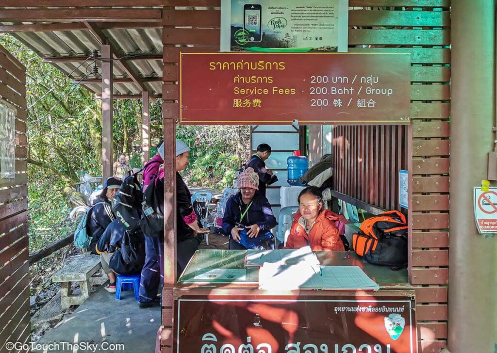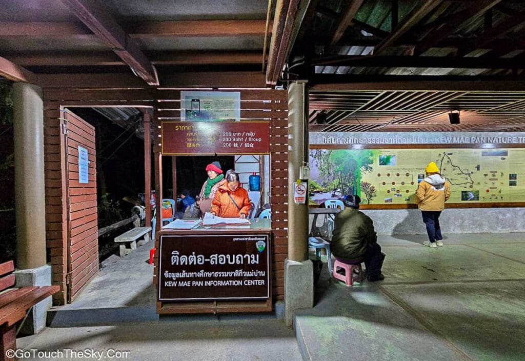 05:30 เจ้าหน้าที่แจ้งเราว่าไม่ต้องจองคิวไก้ด์ (เนื่องจากมีจำนวนเพียงพอ) ให้มาลงทะเบียนและจับคู่กับไก้ด์ในเวลา 06:00 ได้เลย ค่าบริการไก้ด์นำทางมีราคา 200 บาทต่อนักท่องเที่ยวหนึ่งกลุ่ม
