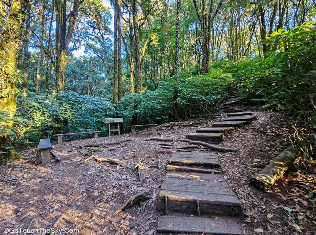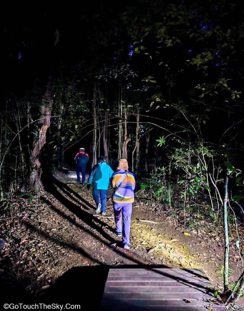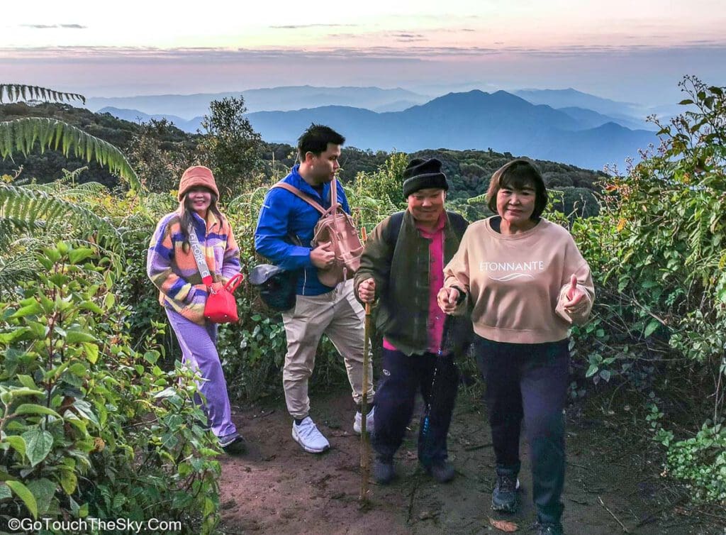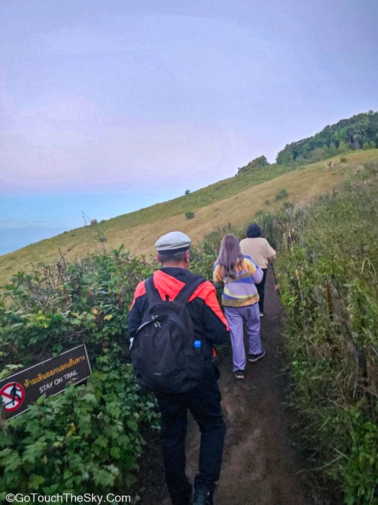 เราเลือกที่จะไม่รอชมอาทิตย์ขึ้นตรงบริเวณศูนย์บริการนักท่องเที่ยว จึงเริ่มออกเดินตั้งเเต่เวลาหกโมงเช้าเลย ในช่วงแรกจึงแอบได้สัมผัสบรรยากาศการเดินป่าในตอนกลางคืนด้วย 😛
