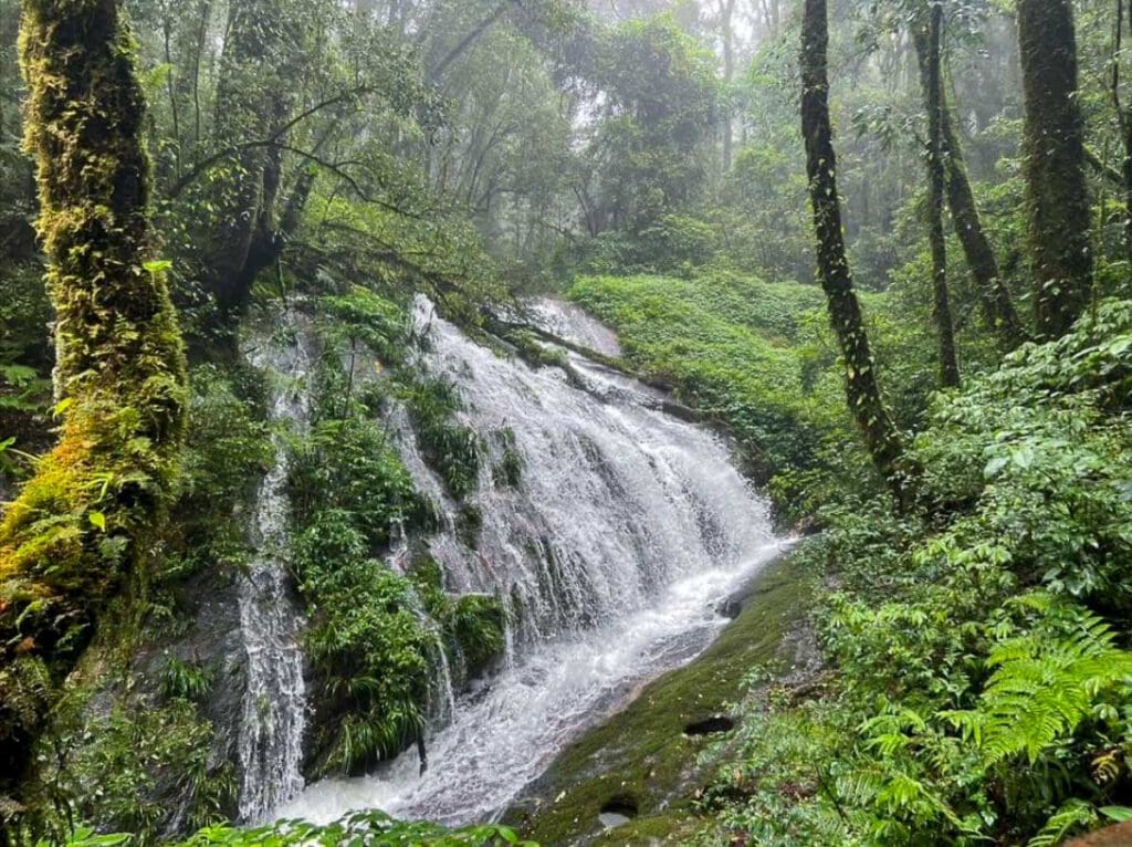หลังจากนั้นเส้นทางจึงวกกลับเข้าสู่บริเวญ เขตป่าดิบเขา อีกครั้ง เป็นการเดินช่วงสุดท้ายซึ่งจะต้องเดินลงสู่ ลำห้วยแม่ปาน ที่ไหลลดเลี้ยวมาจากบนเขา