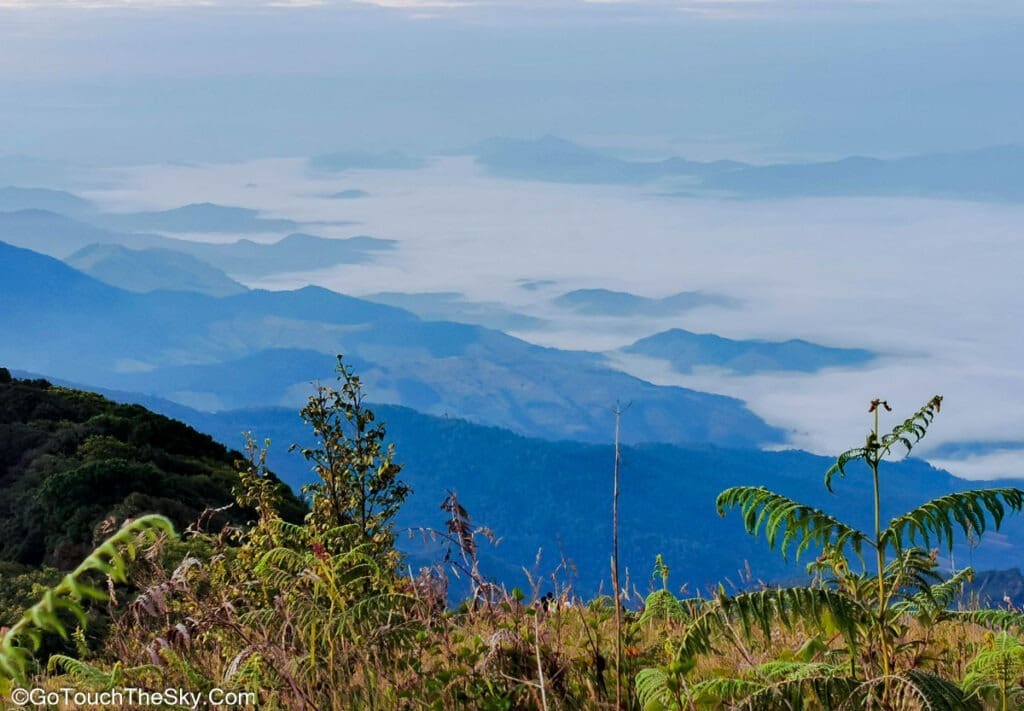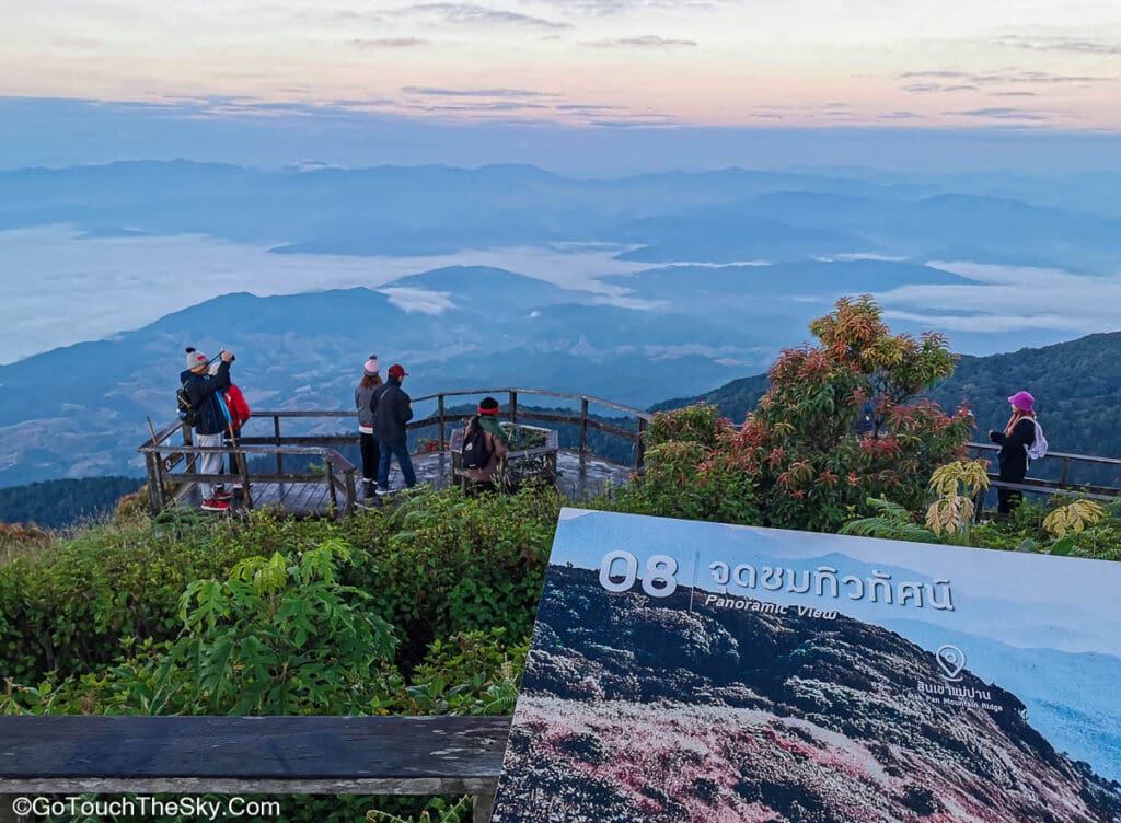 หลังจากนั้นไม่นานก็ถึง จุดชมวิวทิวทัศน์แบบพาโนรามา (พระเอกของเส้นทางนี้ 🙂 ซึ่งสามารถมองเห็นทิวเขาน้อยใหญ่เรียงรายอยู่เบื้องหน้า ถ้าโชคดีก็จะได้เห็นทะเลหมอกสีขาวทอดตัวอยู่เหนือหุบเขาเบื้องล่างด้วย