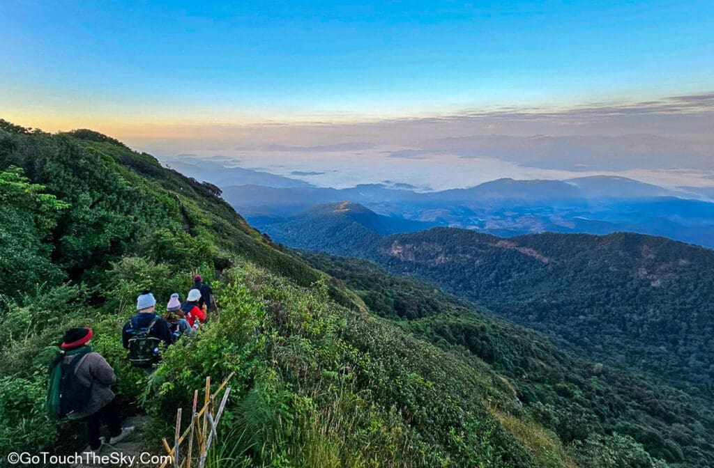 เช้าวันรุ่งขึ้นเราออกเดินทางจากที่พักตั้งแต่ตีห้าเศษๆ ใช้เวลาเดินทาง(ขับรถ) ประมาณ 20 นาที สำหรับคนที่เลือกพักในตัวอำเภอจอมทอง อาจต้องออกเช้ากว่านี้ เพราะในช่วงที่เป็นไฮซีซั่นจะมีนักท่องเที่ยวและรถที่ไปรอขึ้นในตอนเช้ามืดเป็นจำนวนมาก