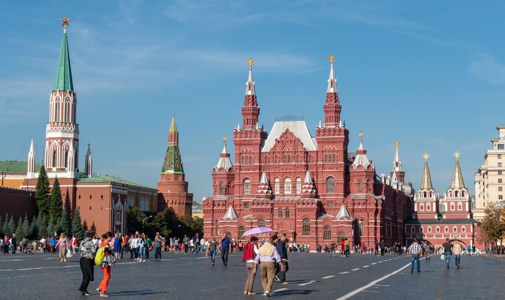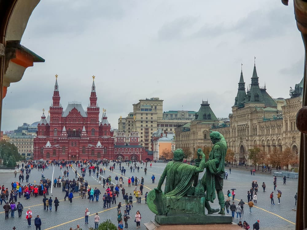 จตุรัสเเดง (Red Square) เป็นลานกว้างที่รายล้อมไปด้วยสถานที่สำคัญต่างๆของกรุงมอสโคว เช่น พิพิธภัณฑ์แห่งชาติ (State Historical Museum), พิพิธภัณฑ์ศึกโบโรดิโน่ (Museum of Patriotic War), โบสถ์คาซาน (Cathedral of Our Lady of Kazan), สุสานเลนิน (Lenin Mausoleum), ห้างสรรพสินค้ากุม (GUM) และที่มีชื่อเสียงโด่งดัง เป็นสัญลักษณ์ที่รู้จักกันทั่วไปเลยก็คือ วิหารเซนต์บาซิล (St. Basil’s Cathedral) และพระราชวังเครมลิน (Moscow Kremlin Palace)