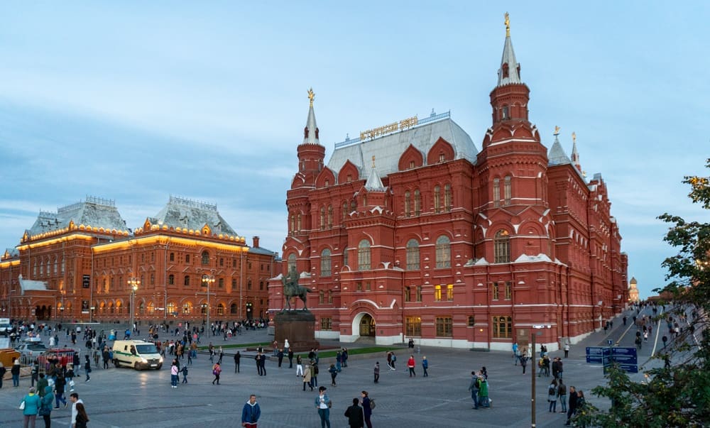 เริ่มต้นกันที่ด้านทิศเหนือของจตุรัสเเดง เป็นที่ตั้งของ Manezhnaya Square ซึ่งเป็นจตุรัสกลางเมืองที่สำคัญอีกเเห่ง ในบริเวณนี้เป็นที่ตั้งของ พิพิธภัณฑ์แห่งชาติ (State Historical Museum) ซึ่งภายในจัดแสดงวัตถุมีค่าที่เกี่ยวข้องกับประเทศรัสเซียจำนวนมากมาย