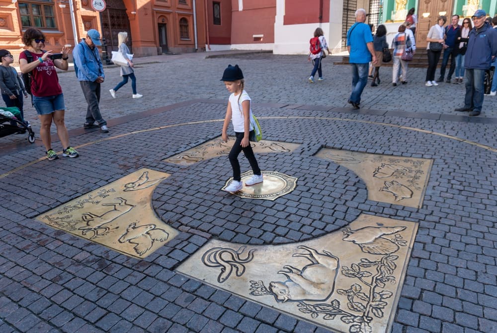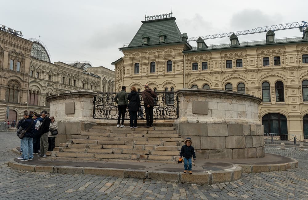 Point of Zero หรือหลักกิโลเมตรที่ศูนย์ของมอสโคว์ อยู่ด้านหน้าโบสถ์ Iberian Chapel