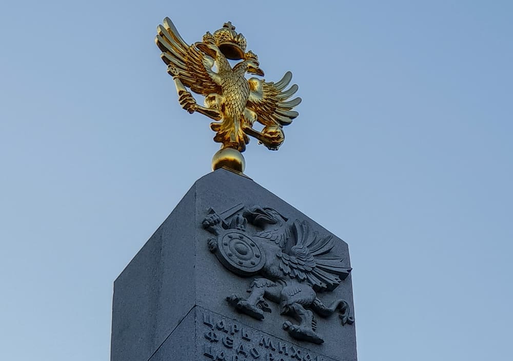 สัญลักษณ์ตราแผ่นดินของรัสเซียคือรูปนกอินทรีสองหัว อันมีความหมายแสดงถึงความกว้างใหญ่ของประเทศรัสเซีย โดยแต่ละหัวหันไปทางซ้ายและขวา หมายถึงการดูแลดินแดนของรัสเซียทั้งทางฝั่งตะวันตกและฝั่งตะวันออก ส่วนไม้คทาหมายถึงอำนาจ ลูกโลกประดับกางเขนหมายถึงนิติบัญญัติ