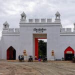 ซุ้มประตูที่เปรียบเสมือนทางเข้าสู่พื้นที่แห่งจิตวิญญาณ ประกอบด้วยเสาหินอ่อนสี่ต้น โดยได้รับแรงบันดาลใจจากสถาปัตยกรรมทางพุทธศาสนาของราชวงศ์ลี๊ (Ly Dynasty) ในอดีต