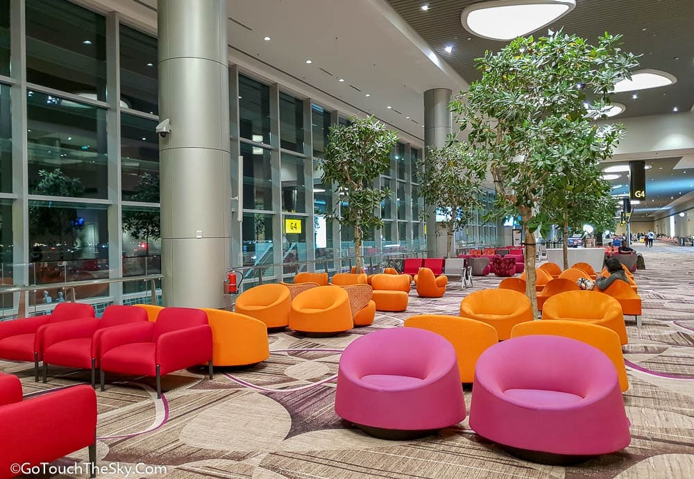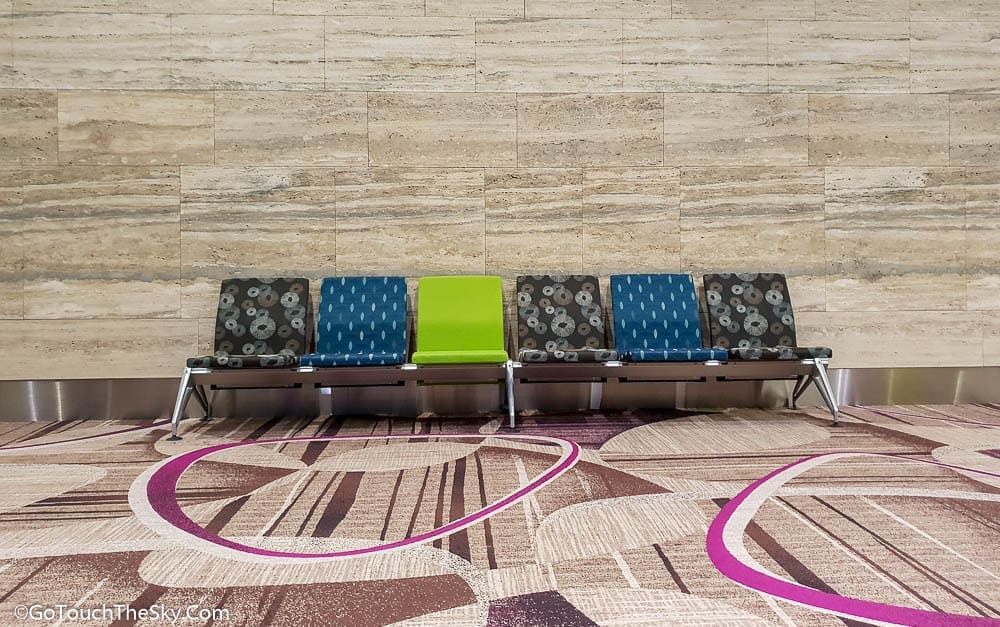 หลังจากนั้นก็เข้าสู่ในส่วนของพื้นที่รอขึ้นเครื่อง การตกเเต่งใช้สไตล์และสีสันที่สดใส