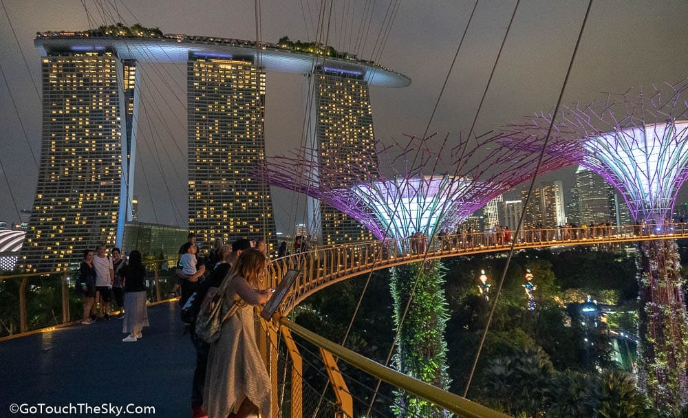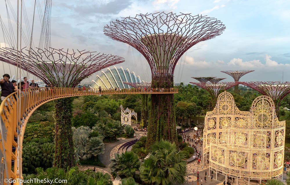 OCBC Skyway หรือทางเดินลอยฟ้า (สปอนเซอร์โดย Oversea-Chinese Banking Corporation Limited) มีความยาวประมาณ 128 เมตรและอยู่สูงจากพื้น 22 เมตร เป็นสะพานที่เชื่อมระหว่าง Supertrees ในกลุ่มกลาง ด้านบนสามารถมองเห็นวิวได้โดยรอบ (ต้องเสียค่าขึ้นชม ผู้ใหญ่ 8 SGD, เด็ก 3 SGD)