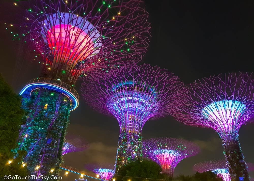 ภาพที่เป็นสัญญลักษณ์อีกอย่างหนึ่ง เมื่อพูดถึง Gardens by the Bay ของสิงคโปร์ก็คือ Supertrees Grove หรือกลุ่มต้นไม้ยักษ์ และการแสดงเเสงสีเสียงที่มีชื่อเรียกว่า Garden Rhapsody ในตอนกลางค่ำ