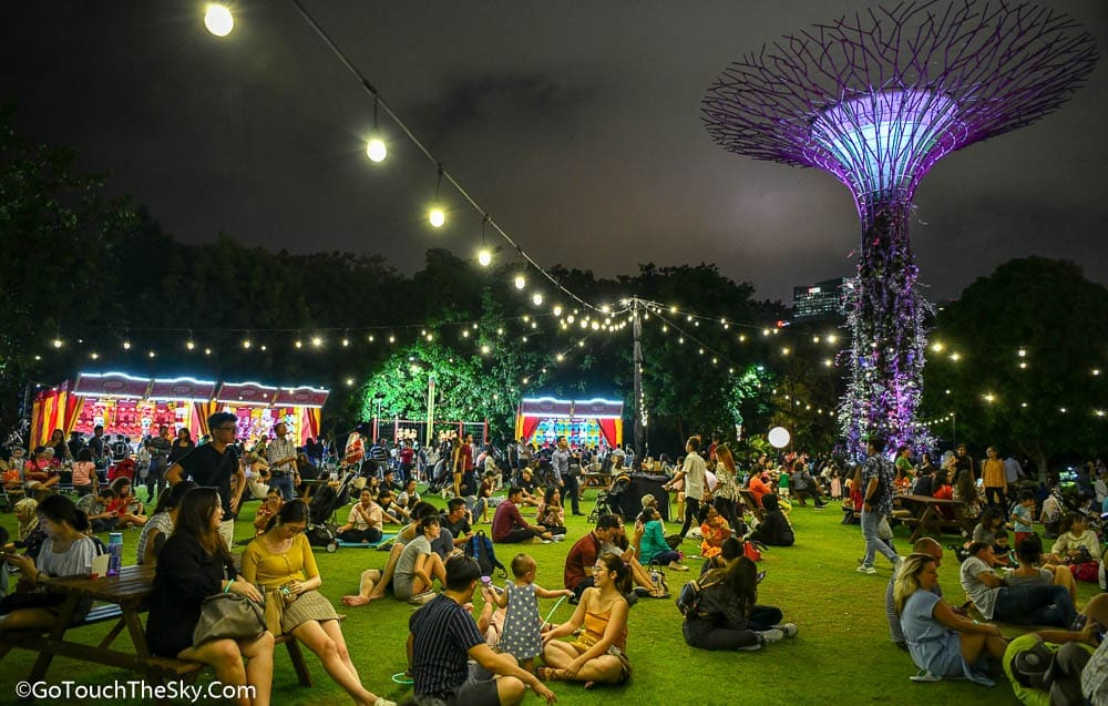 การแสดงเเสงสีเสียง Garden Rhapsody จะเริ่มทุกวันในเวลา 19:45 และ 20:45 น. โดยสามารถชมได้ฟรีที่บริเวณลานรอบๆ Supertrees Grove