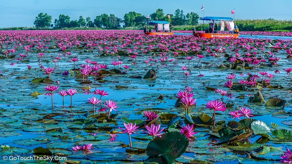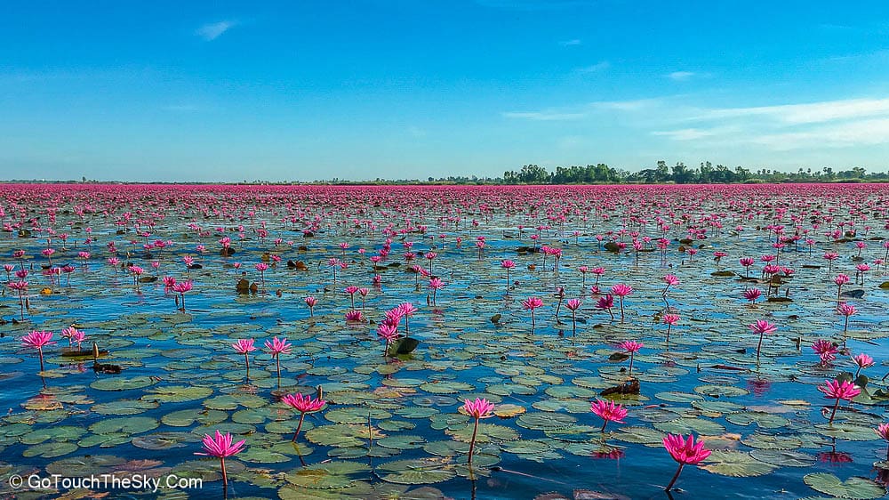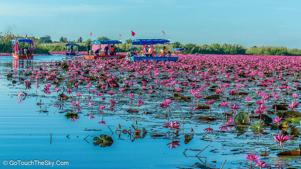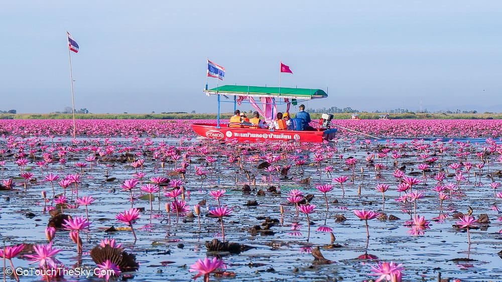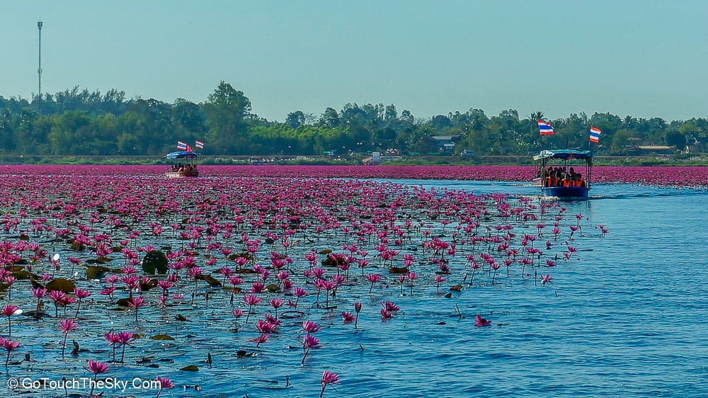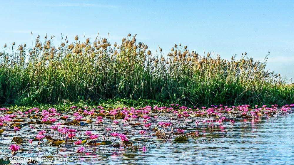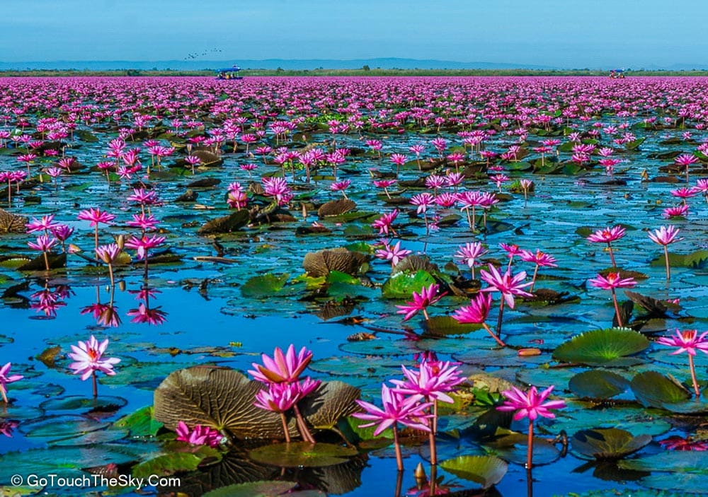 ไกลออกมาอีกหน่อย ก็จะพบกับภาพของ “ทะเลบัวแดง” ที่สวยงามสมคำเล่าลือ