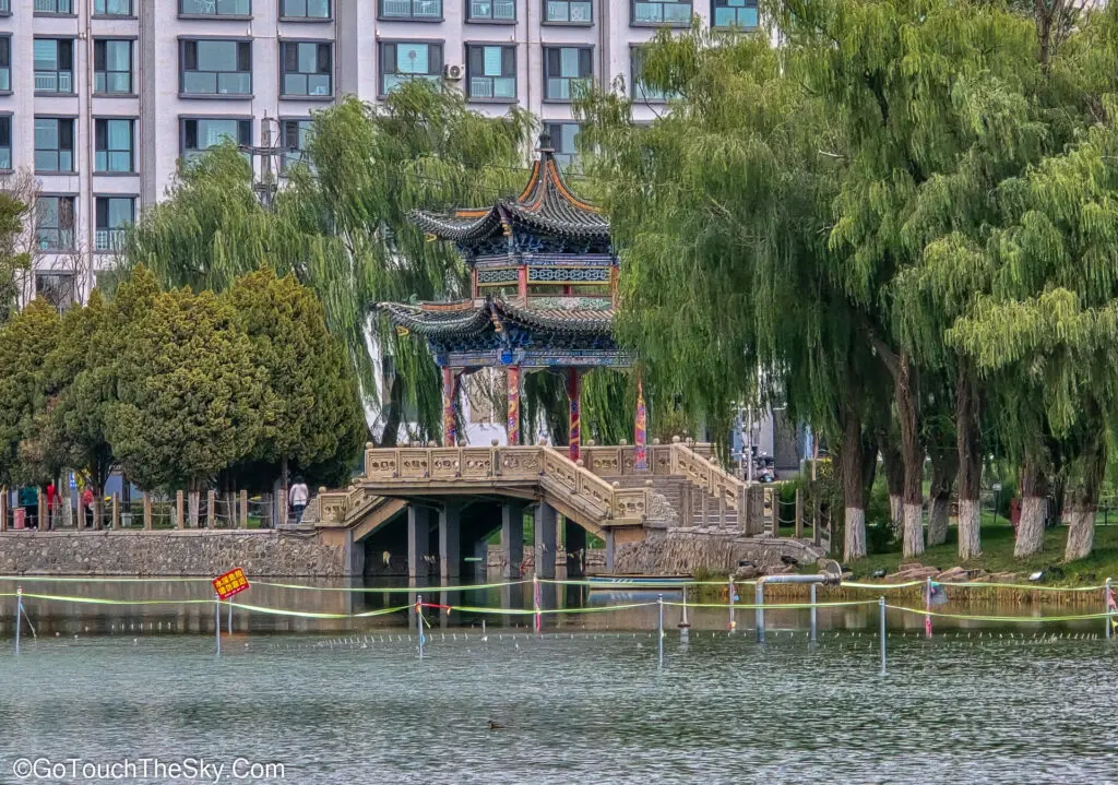 ตอนเย็นเราไปเดินเล่นที่ ถนนคนเดินโบราณหมิง–ชิง (明清古街 / Ming–Qing Ancient Street) ซึ่งตั้งอยู่ไม่ไกลจาก สวนสาธารณะกานฉวน (甘泉公园) ถนนสายนี้ยาวประมาณ 323 เมตร สร้างขึ้นในสไตล์จำลองสถาปัตยกรรมสมัยหมิง–ชิง อาคารก่ออิฐสีเทา หลังคาโค้งประดับลวดลายจีนโบราณ ให้บรรยากาศย้อนยุคเหมือนเดินอยู่ในเมืองโบราณจริง ๆ