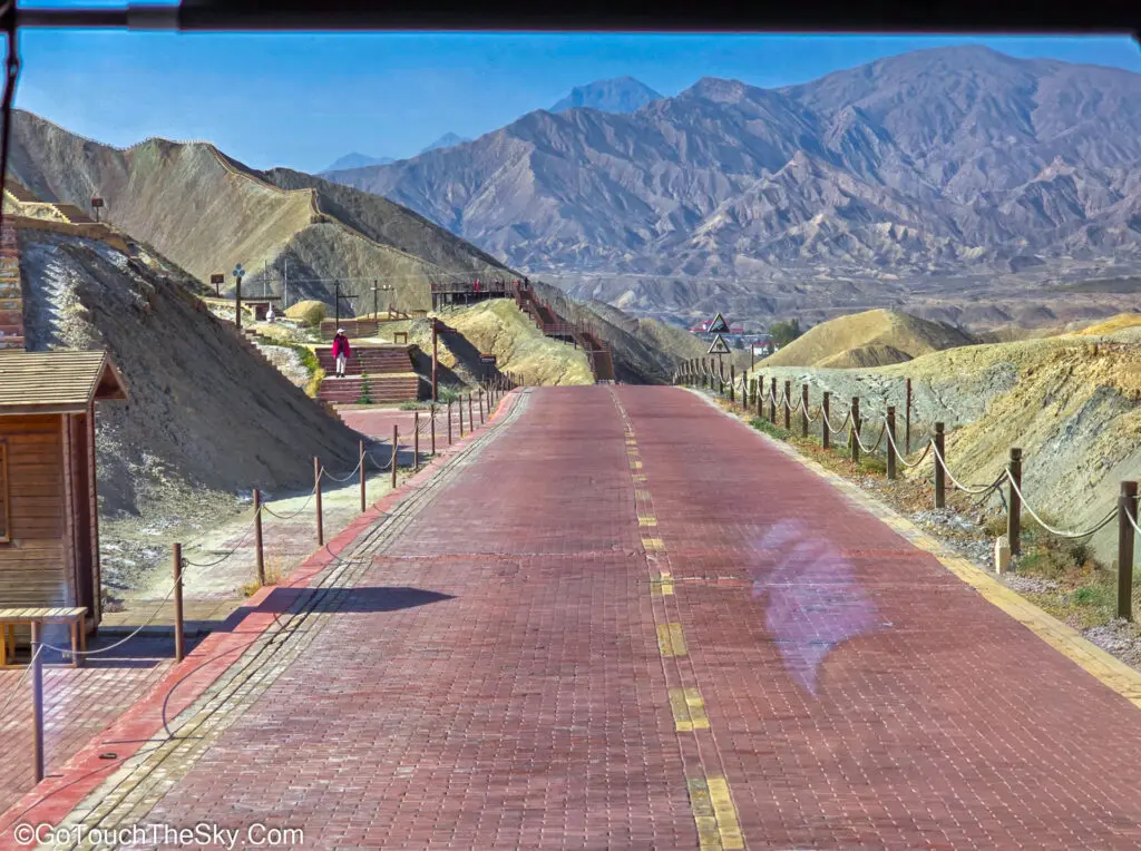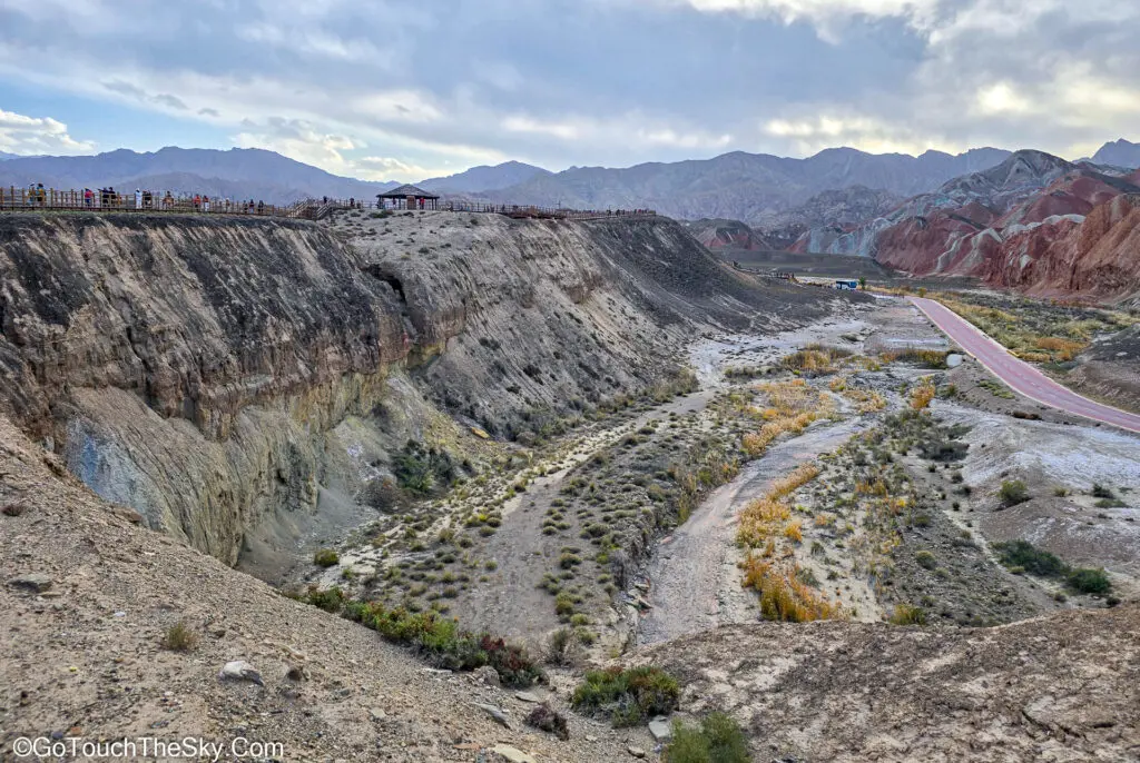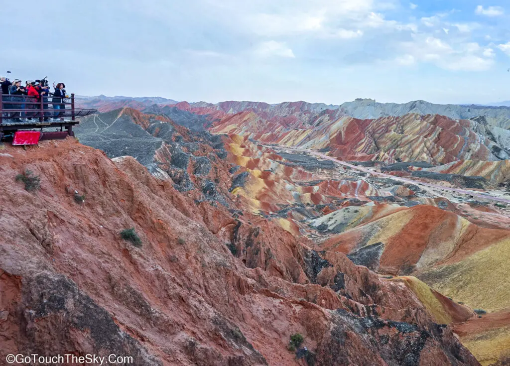 อีกฟากหนึ่งของถนนมี แท่นชมวิวมุมสูง ที่สามารถมองเห็นทิวทัศน์แบบขนานไปกับแนวภูเขาสีสันสดใสฝั่งตรงข้าม เป็นจุดชมวิวหลักของพื้นที่นี้ มุมมองจากด้านบนช่วยให้เห็นลวดลายชั้นหินและสีสันของภูเขาได้ชัดเจนขึ้น
