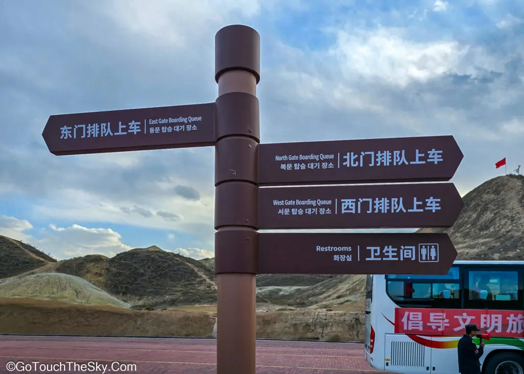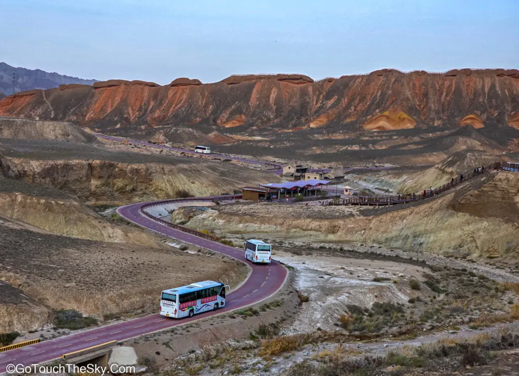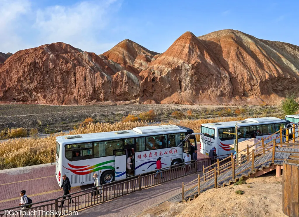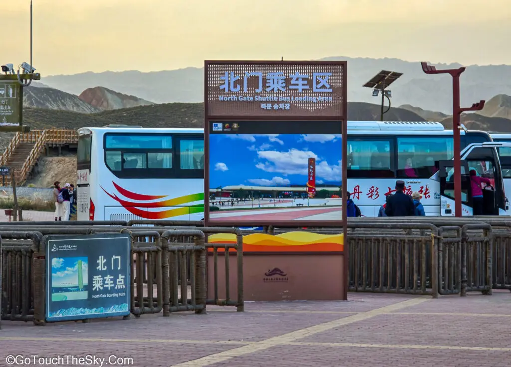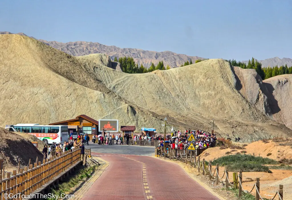นักท่องเที่ยวส่วนใหญ่มักจะนิยมใช้ประตูด้านทิศเหนือ ซึ่งอยู่ใกล้กับถนนหลัก Zhangye–Danxia มี Visitor Center, รถบัสเวียน และสิ่งอำนวยความสะดวกครบครัน