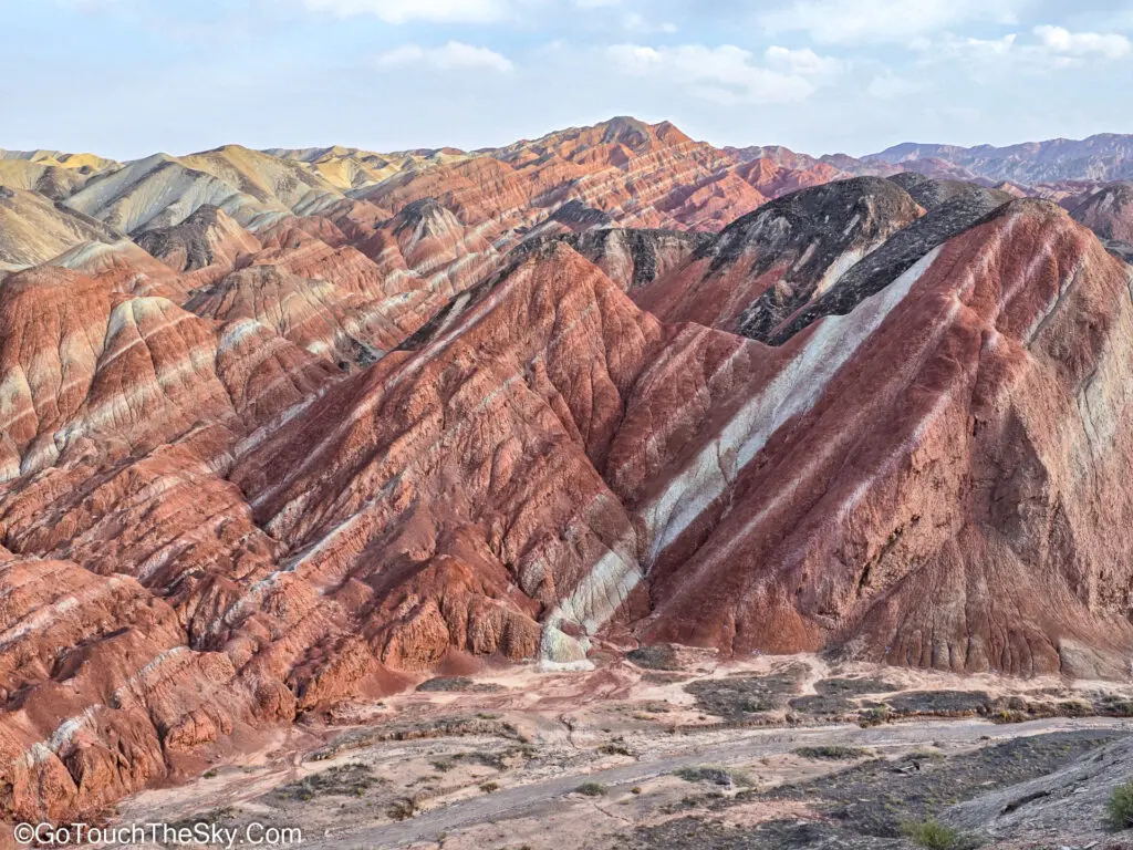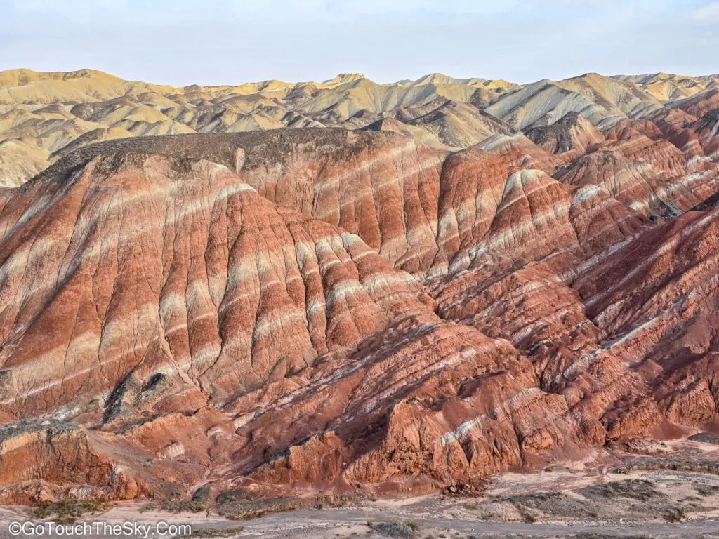 ริ้วลายสีแดง ส้ม และเหลืองพาดตัวตามสันเขาอย่างโดดเด่น เมื่อถูกแต่งแต้มด้วยแสงอาทิตย์อ่อนนุ่มยามเย็น ภูเขาทั้งผืนจะดูเหมือนลุกวาบขึ้นมาจากภายใน กลายเป็นภาพปิดท้ายของการเดินทางที่ยากจะลืมเลือน