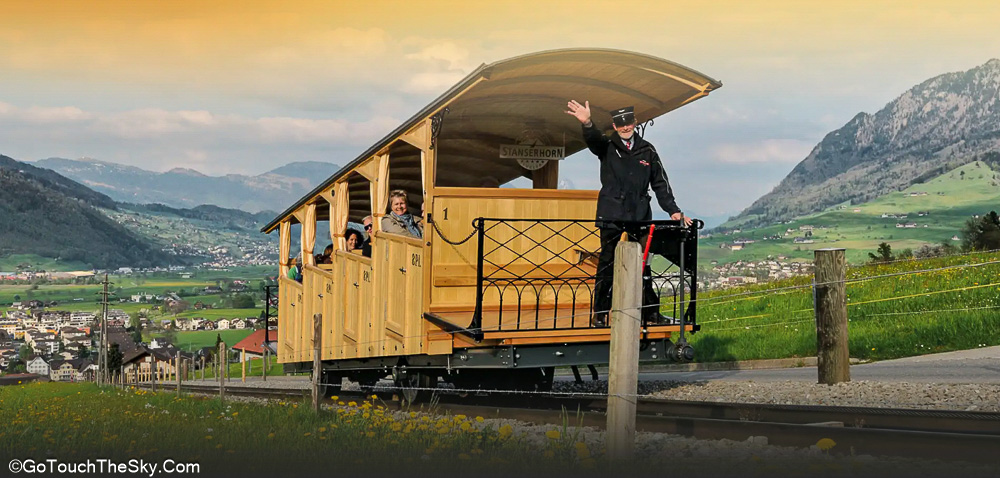 การเดินทางขึ้น Stanserhorn เริ่มต้นด้วยการเดินทางด้วยรถราง (Funicular Railway) เก่าแก่จาก สถานี Stanserhorn-bahn ไปยัง สถานีกลางทาง Kälti โดยใช้เวลาประมาณ 10 นาที ที่สถานีกลางทาง Kälti เปลี่ยนไปขึ้น กระเช้าไฟฟ้า CabriO แล้วเดินทางต่อขึ้นไปยังยอดเขา Stanserhorn ในเวลาอีกเพียงไม่ถึง 10 นาที