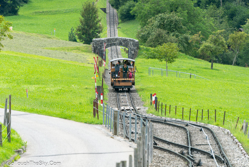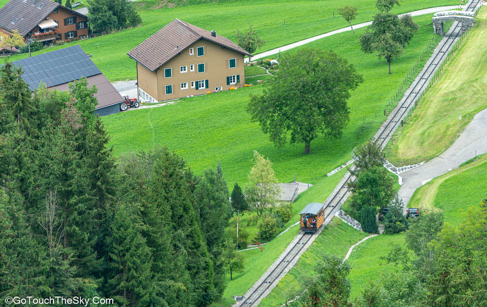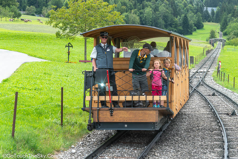 หลังจากที่ขึ้นไปเที่ยวยอดเขา Titlis ในตอนเช้า ช่วงบ่ายเรานั่งรถไฟจาก Engelbarg มาลงที่เมือง Stans ใช้เวลาประมาณ 30 นาที แล้วเดินจากสถานีรถไฟอีก 400 เมตรไปยัง สถานีรถราง Stanserhorn-bahn เพื่อเดินทางขึ้นไปยังยอดเขา Stanserhorn