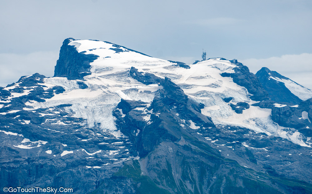 ถ้าส่องกล้องดู จะมองเห็นยอดเขา Titlis อยู่ไกลๆ (สังเกตตรงอาคารถ่ายทอดสัญญาณที่ตั้งอยู่บนยอดเขา)